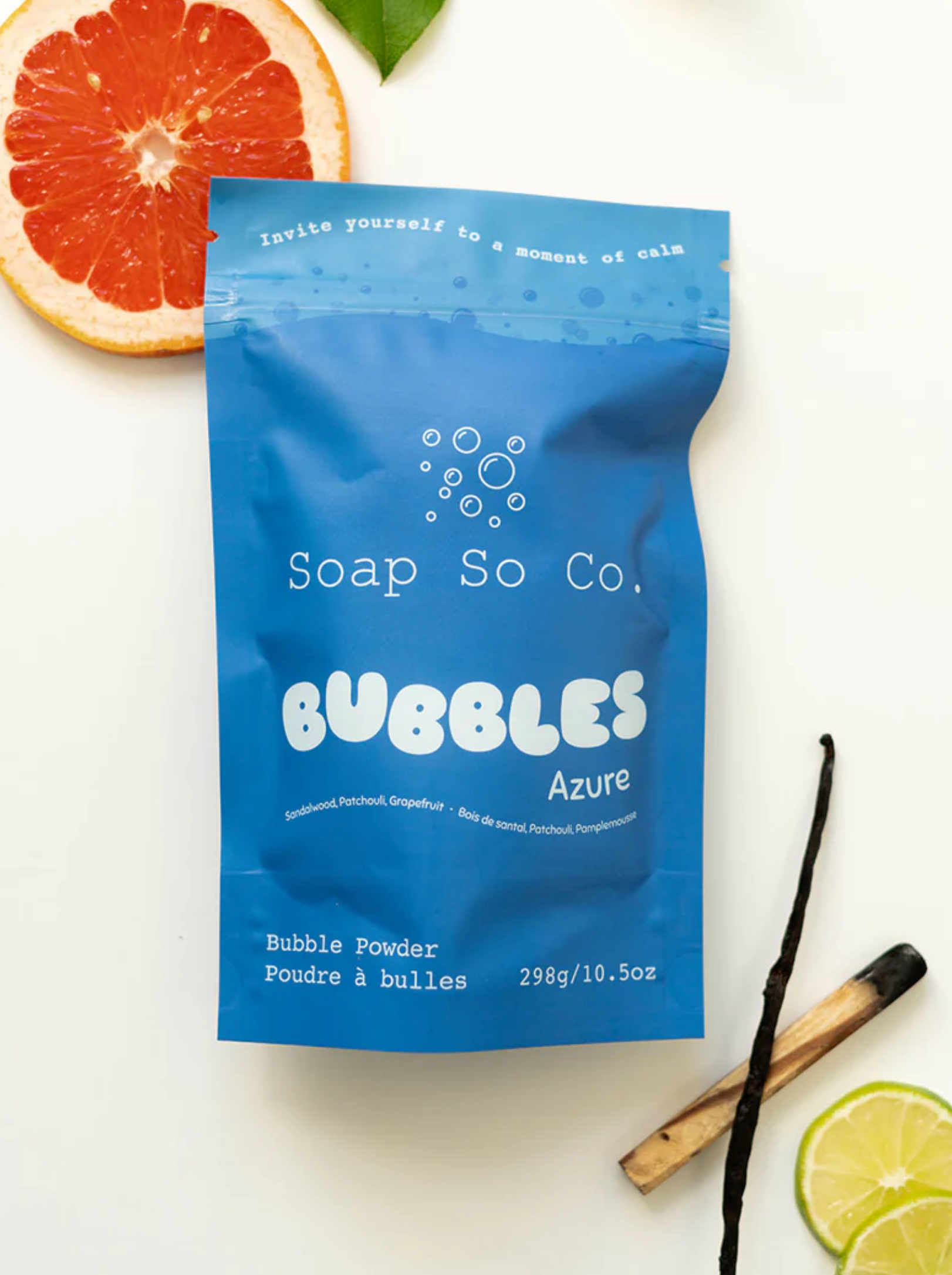 Distinct fragrances of sandalwood and patchouli fuse in our Azure Bubble Bath Powder, building a strong, earthy profile. Its grounding aroma is the perfect answer to a stressful day (or life). Leave it all at the door and soak away with Azure.