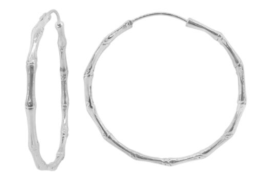 Sterling silver, bamboo hoop earrings, 42mm diameter, 2mm thickness