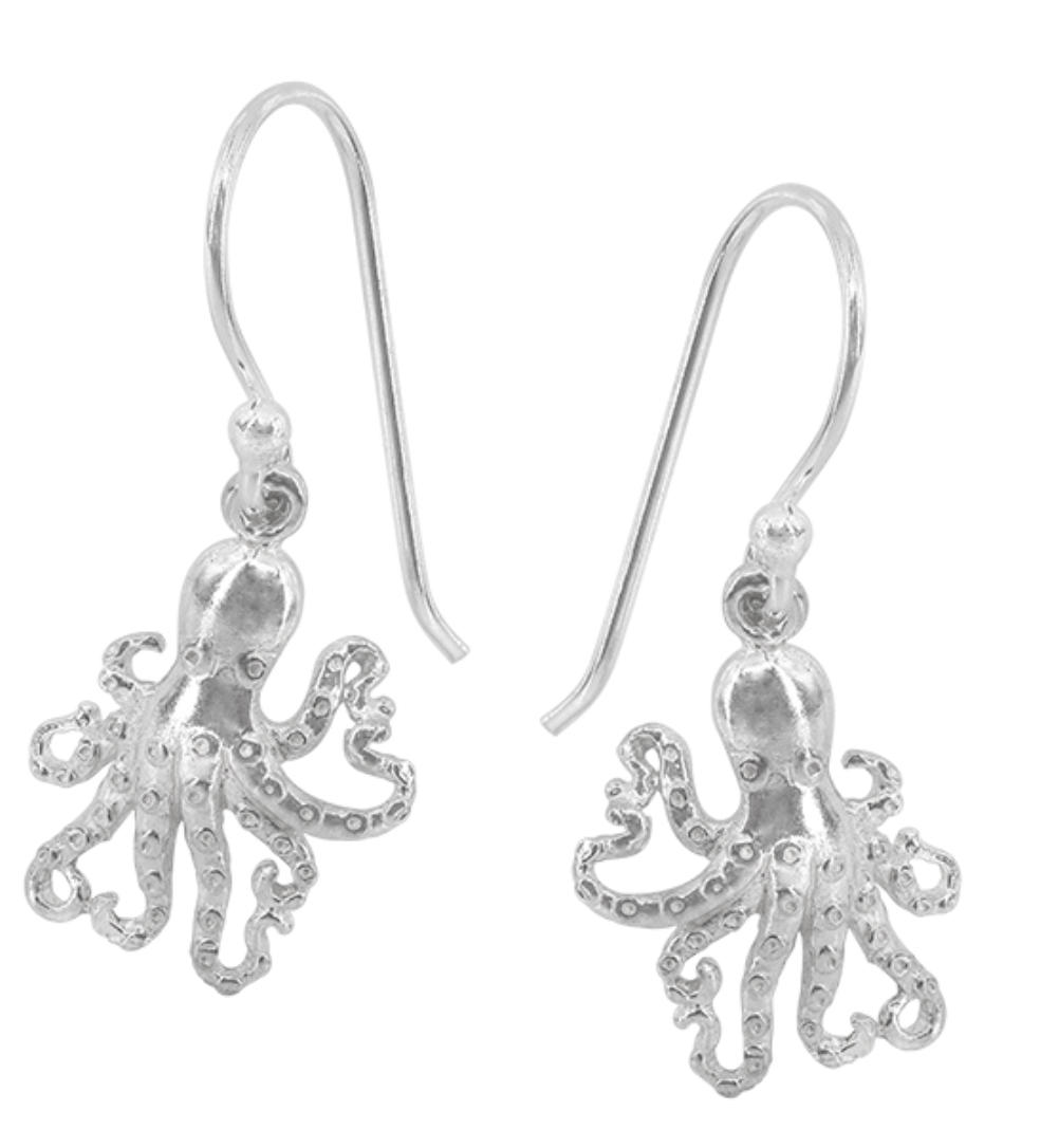 Sterling silver, octopus earrings, 12x13mm