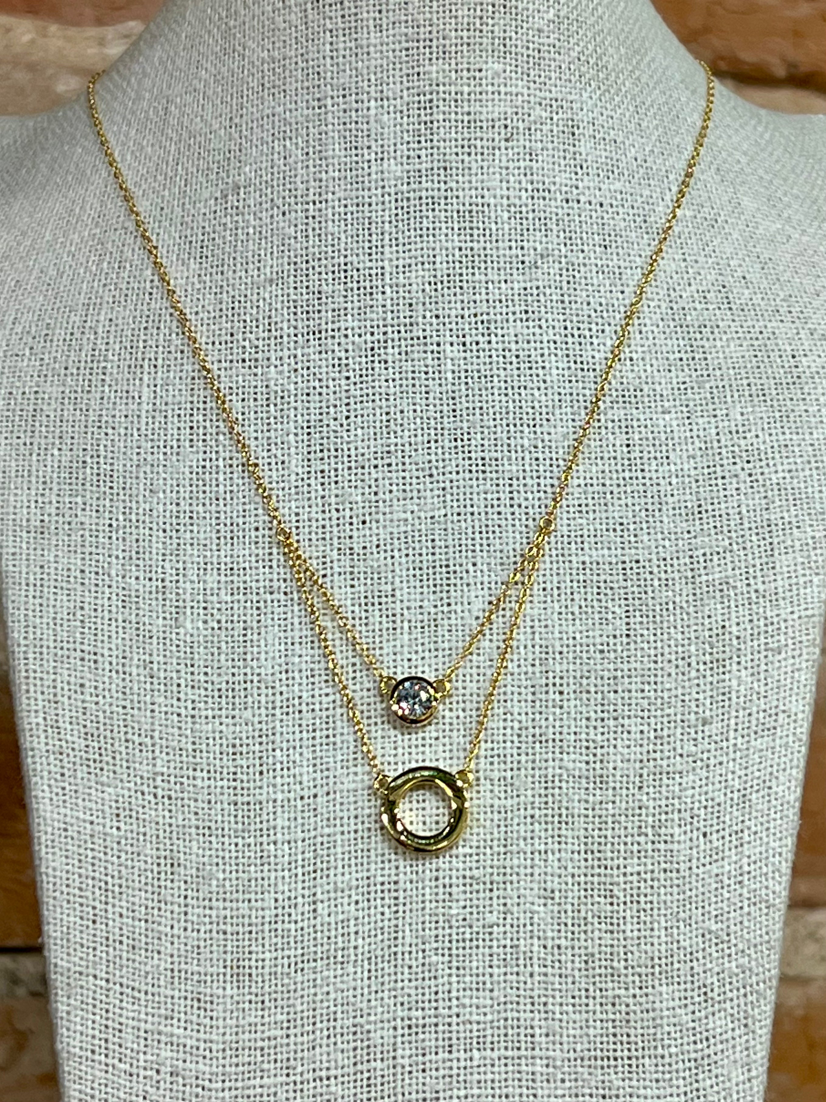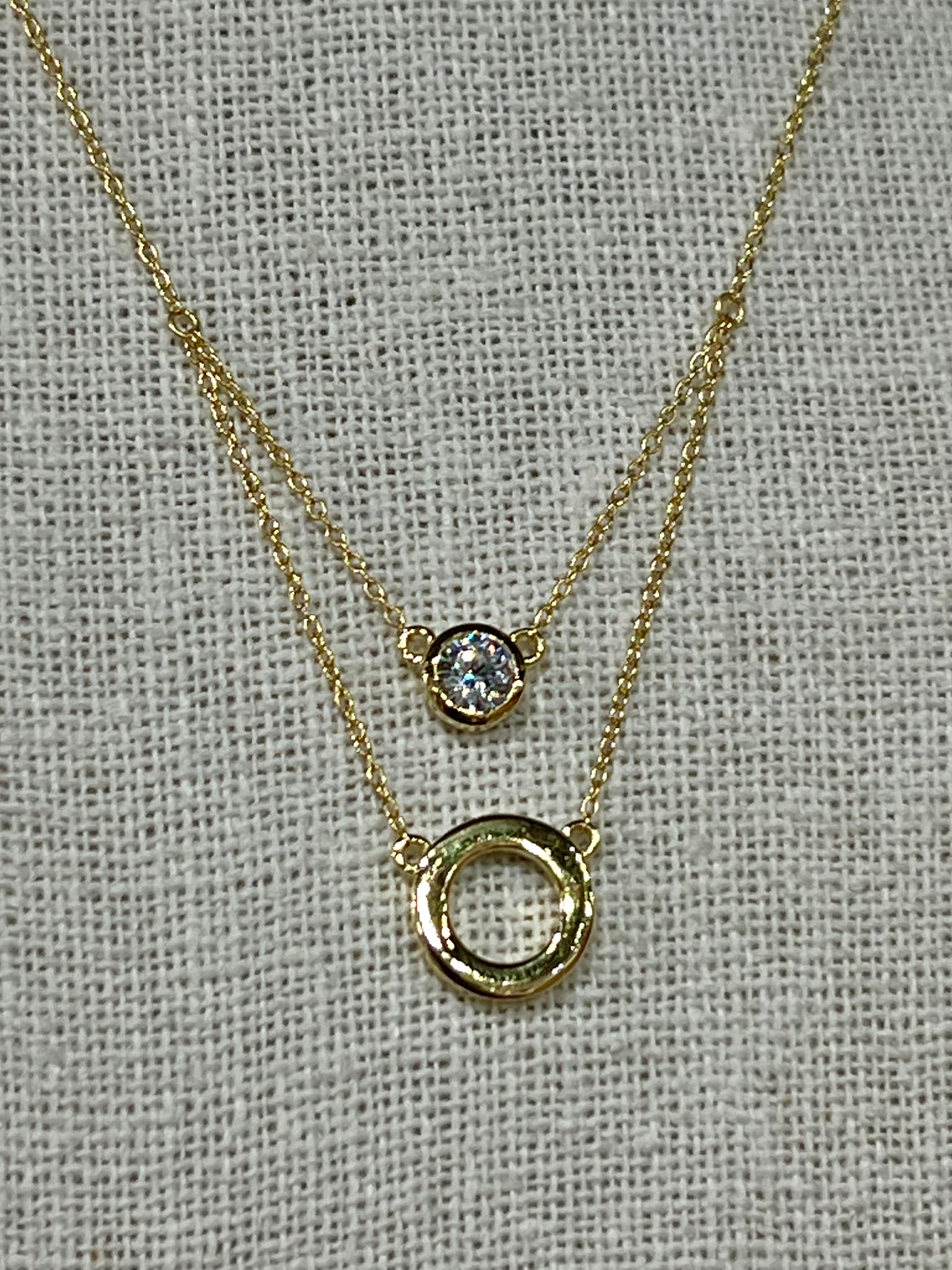 Cubic zirconia layered with a smooth circle. Thick gold plating 2.5 miscon, over sterling silver