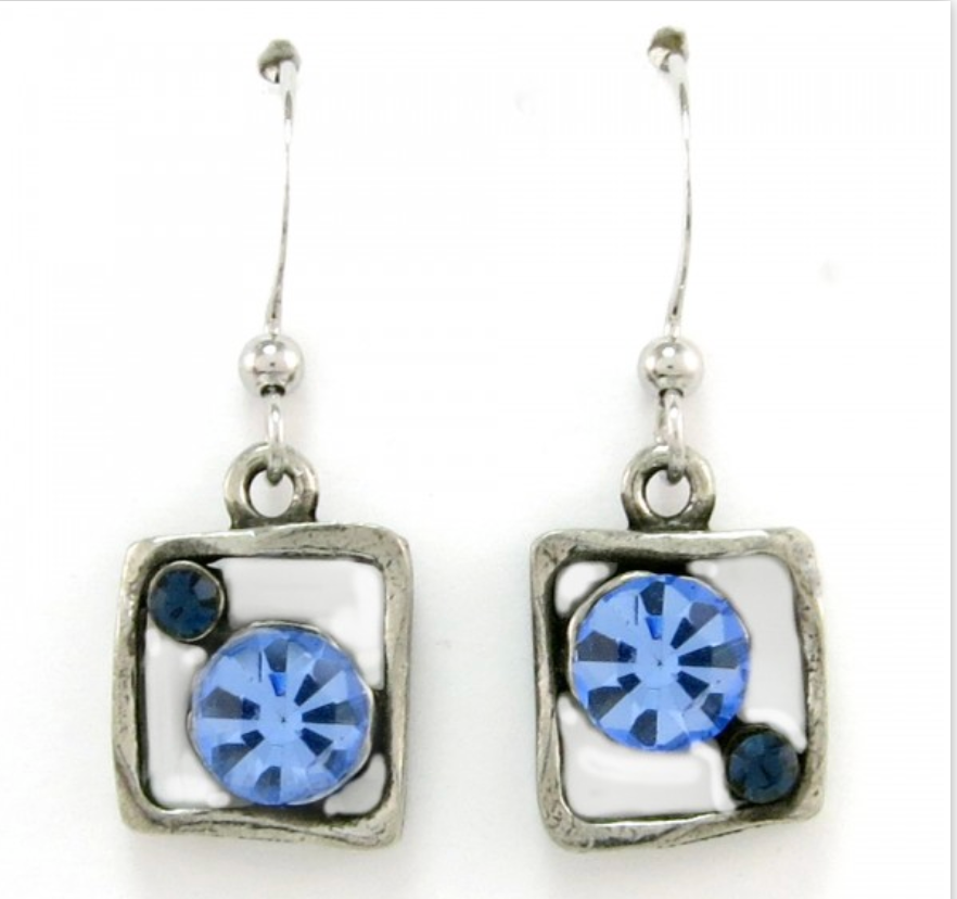 Blue crystal earrings / organic square shape
