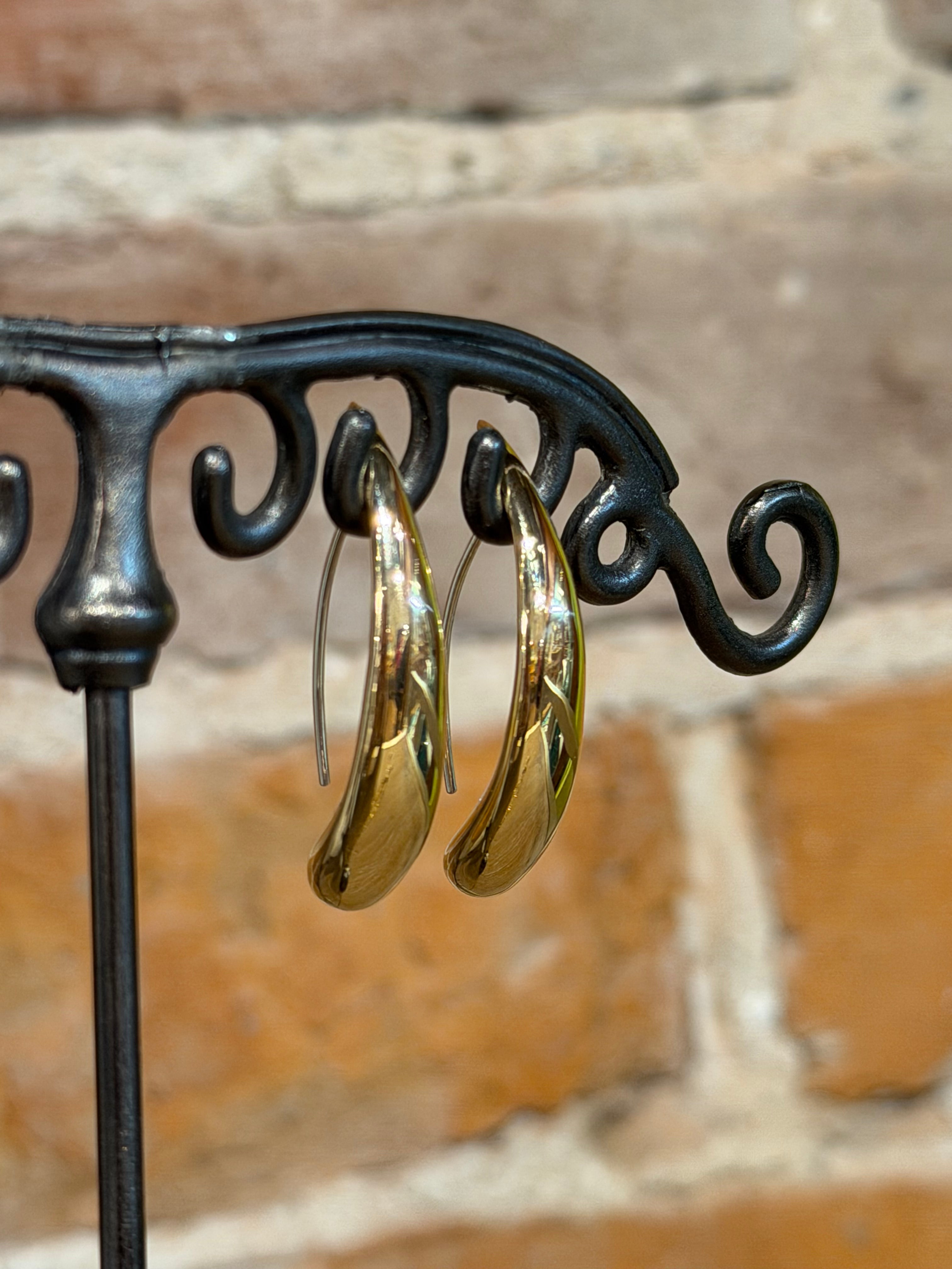 Sleek and sculptural, these bronze hook earrings feature a long teardrop silhouette that curves gracefully along the ear. They make a bold yet minimalist statement—perfect for everyday wear or elevated evening looks. The warm golden tone of bronze highlights their fluid design, while the polished finish catches the light beautifully. Lightweight and comfortable, these earrings are modern essentials that pair effortlessly with both casual and dressy styles. Bronze earrings have sterling silver posts or ear wires. ·         Lipped earring cards will come free with every order. Please note that earrings will not be pre-carded. ·         Our bronze is a high-quality Italian alloy of copper and tin that contains an anti-tarnish compound which delays, but does not eliminate, eventual oxidation.