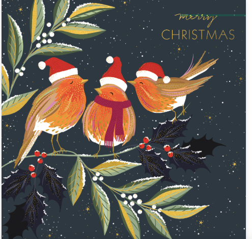 Merry Christmas box set of 8 Luxury cards / 3 robins