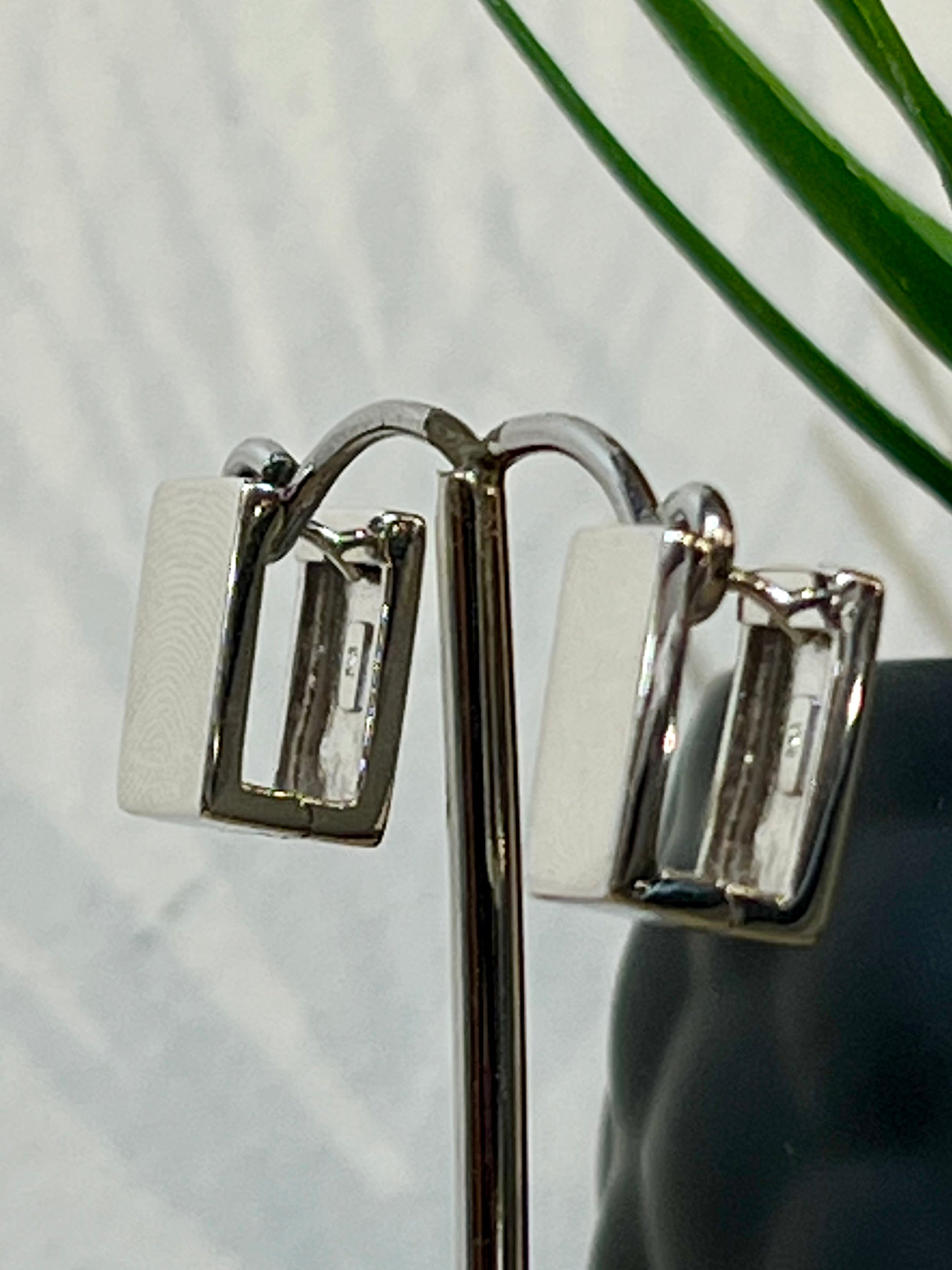 Sterling silver rectangular huggie hoop earrings, rhodium plating