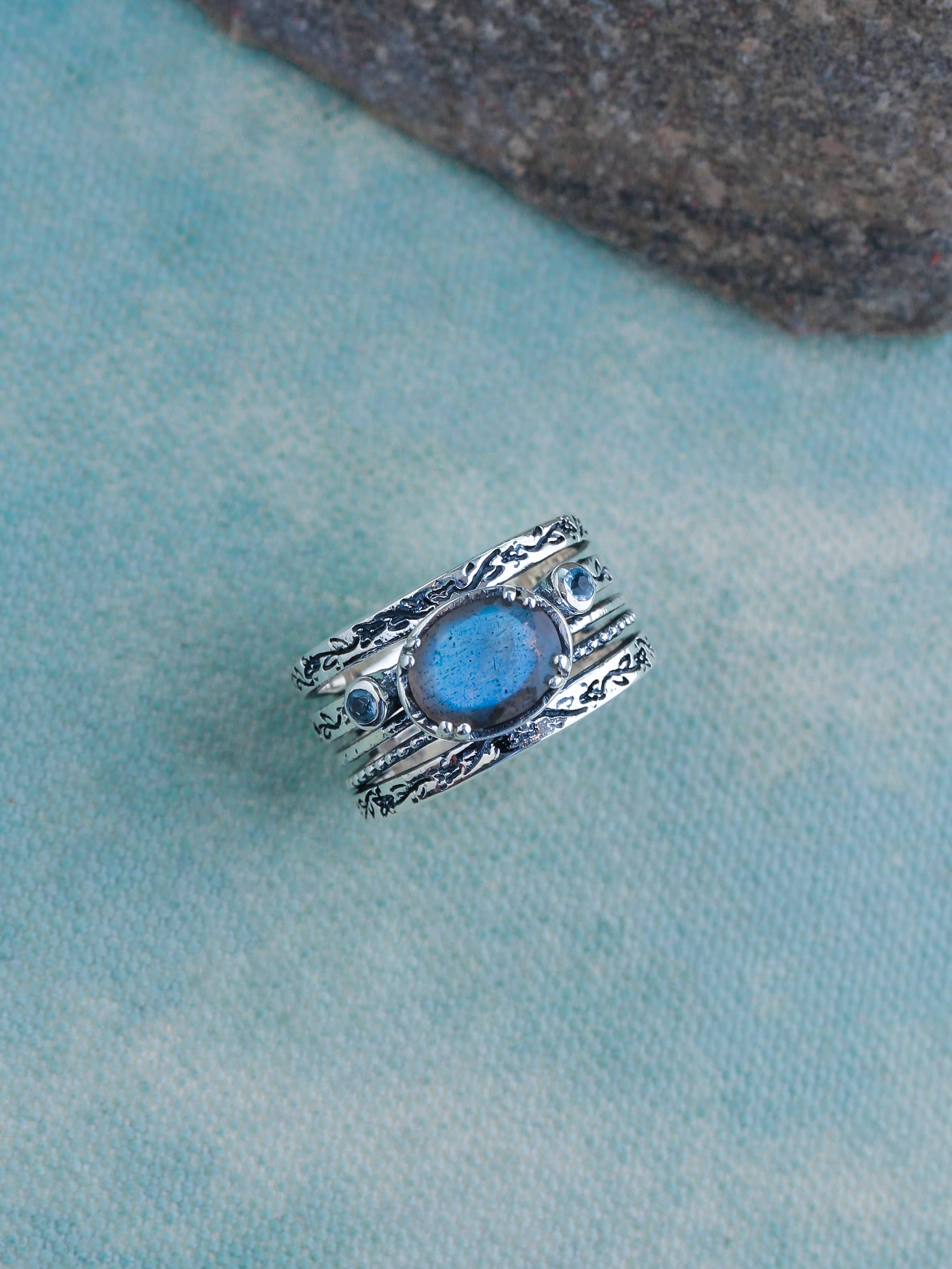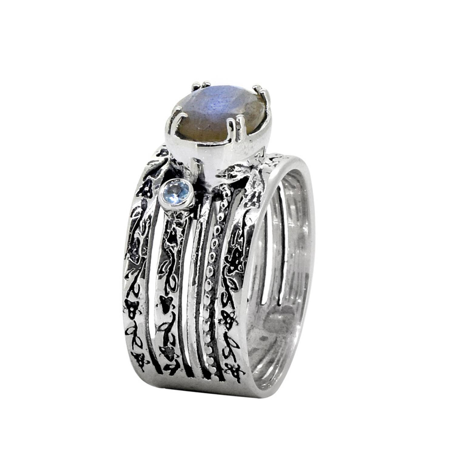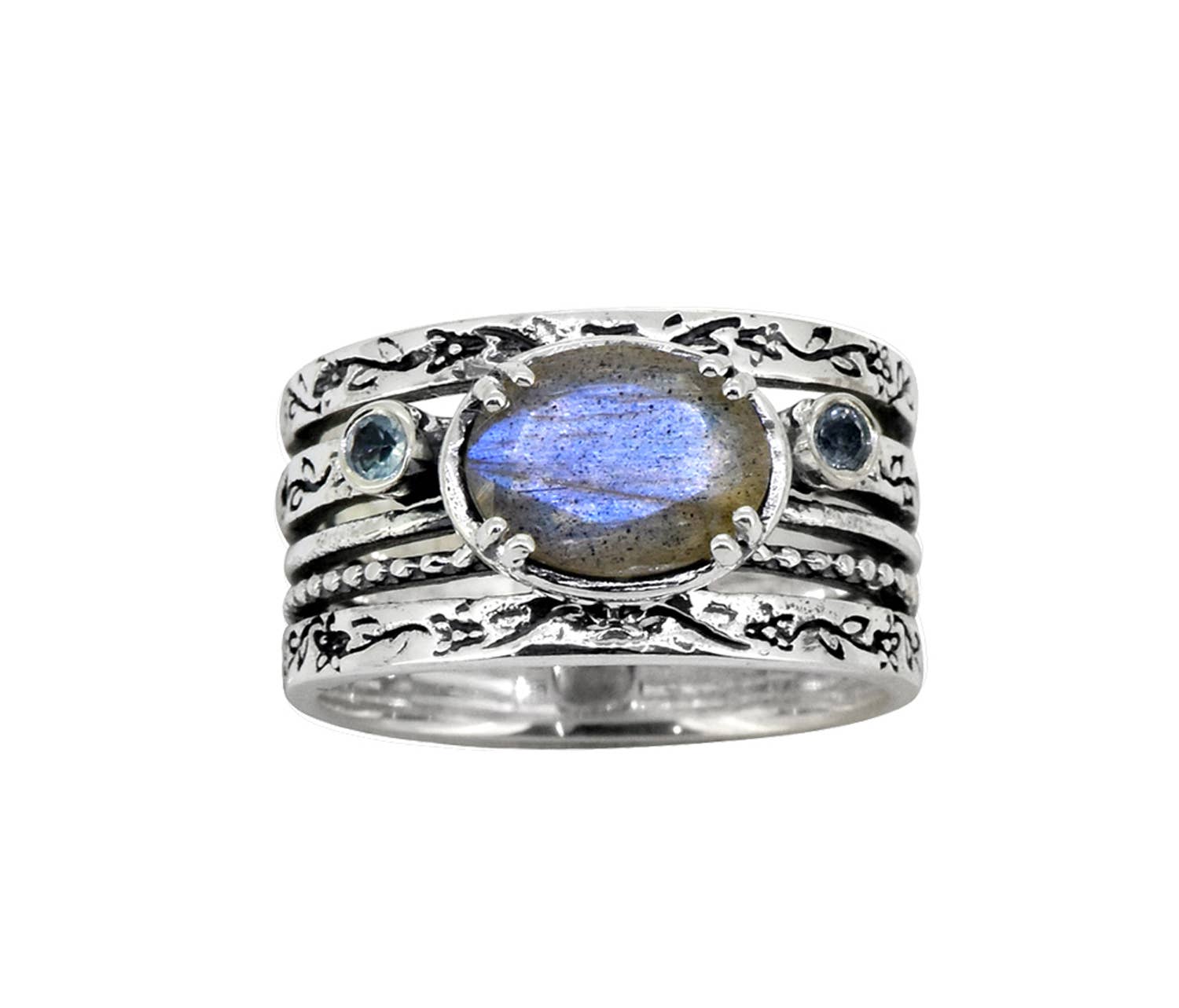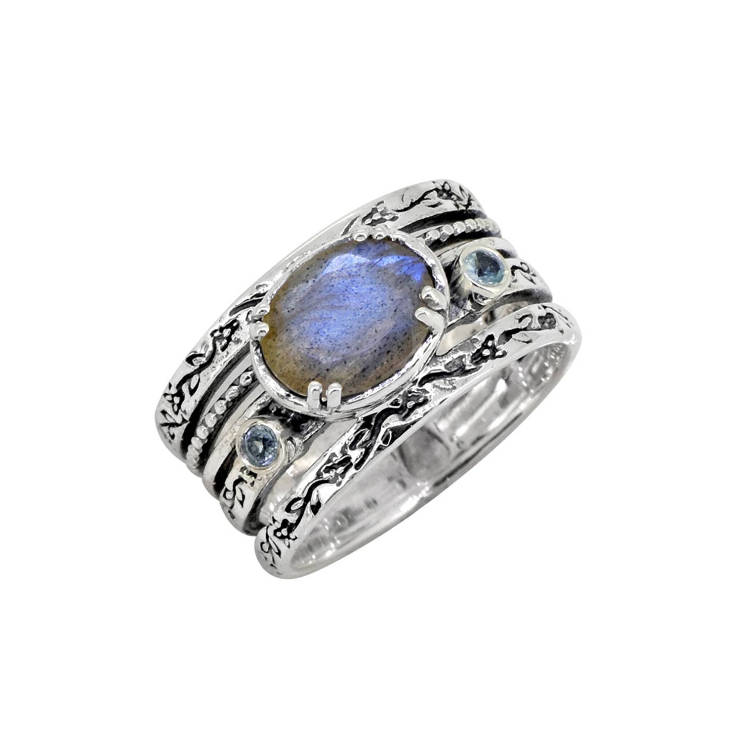 Labradorite & Swiss Blue Topaz Sterling Silver Antique Ring