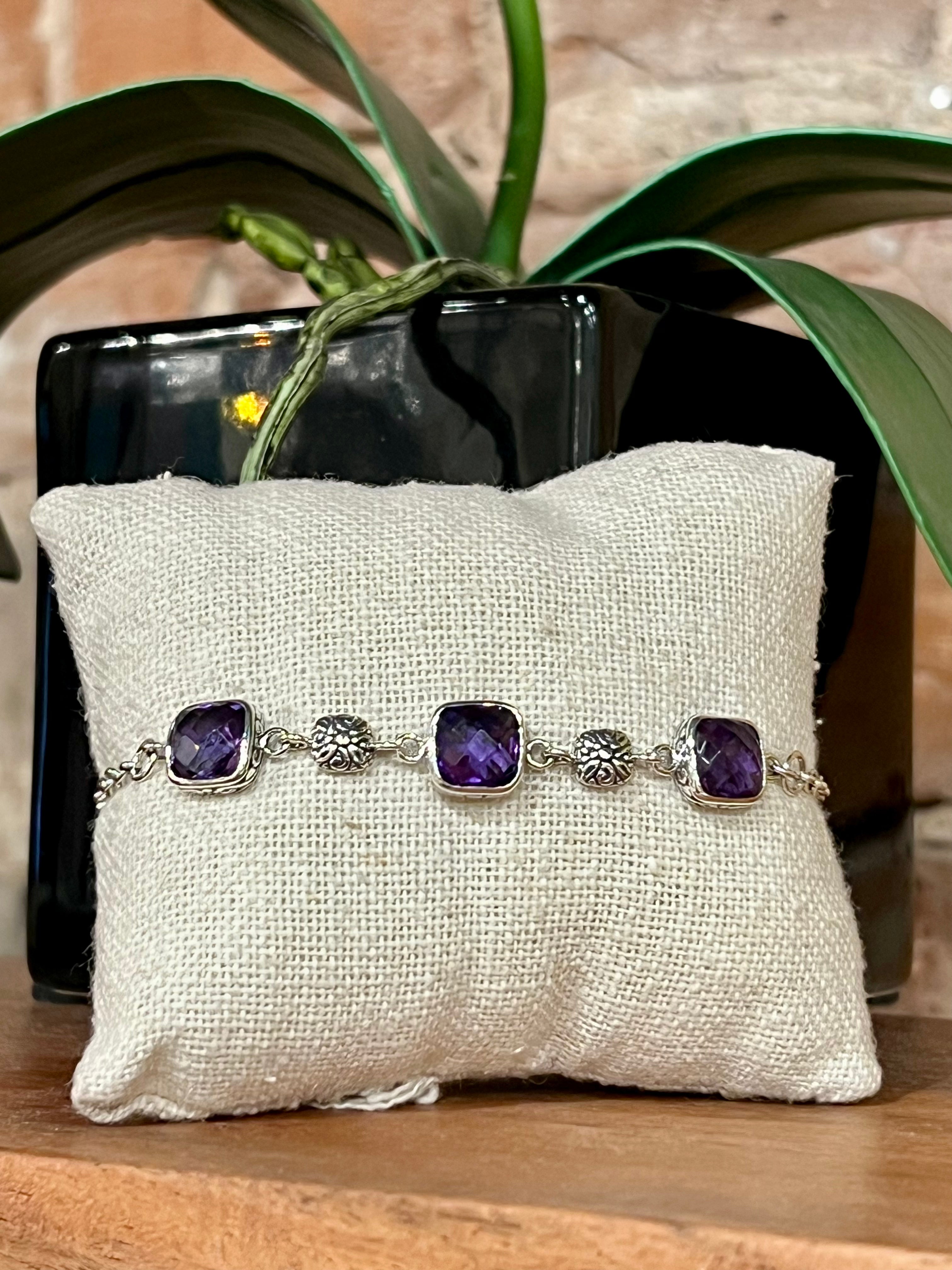 Sterling silver bracelets with filigree. Amethyst, Citrine, London Blue Topaz. 9MM, 7.5"