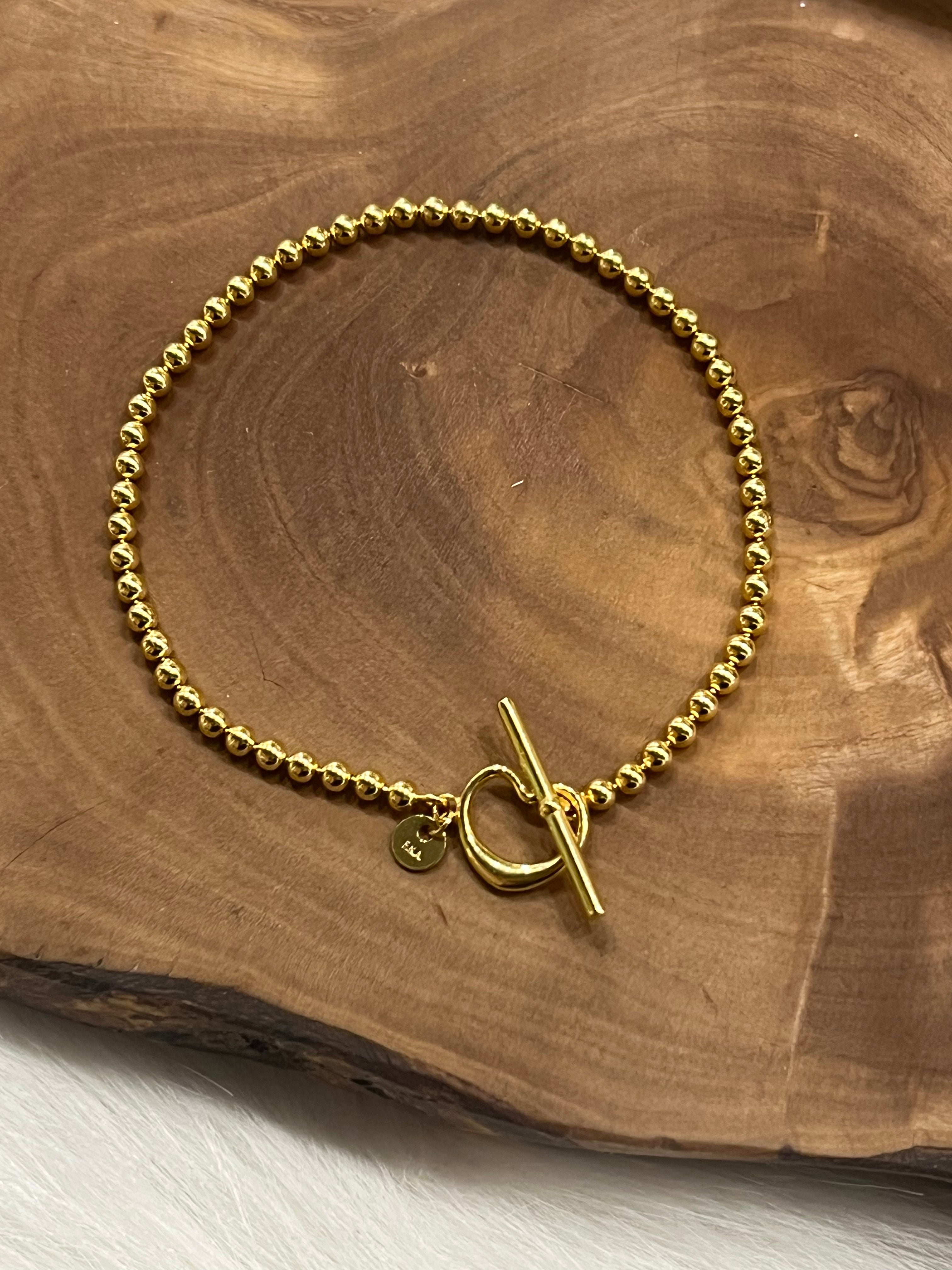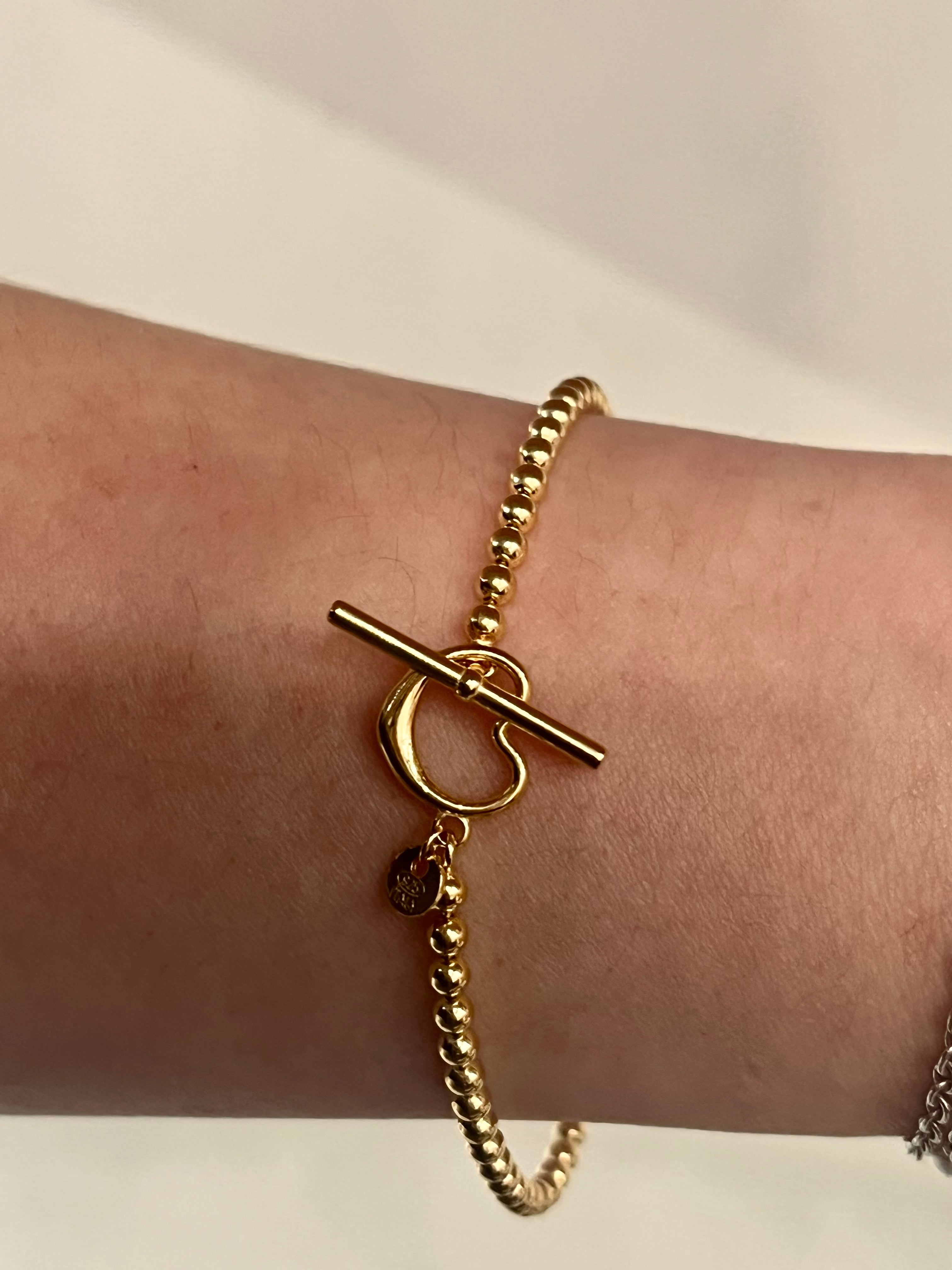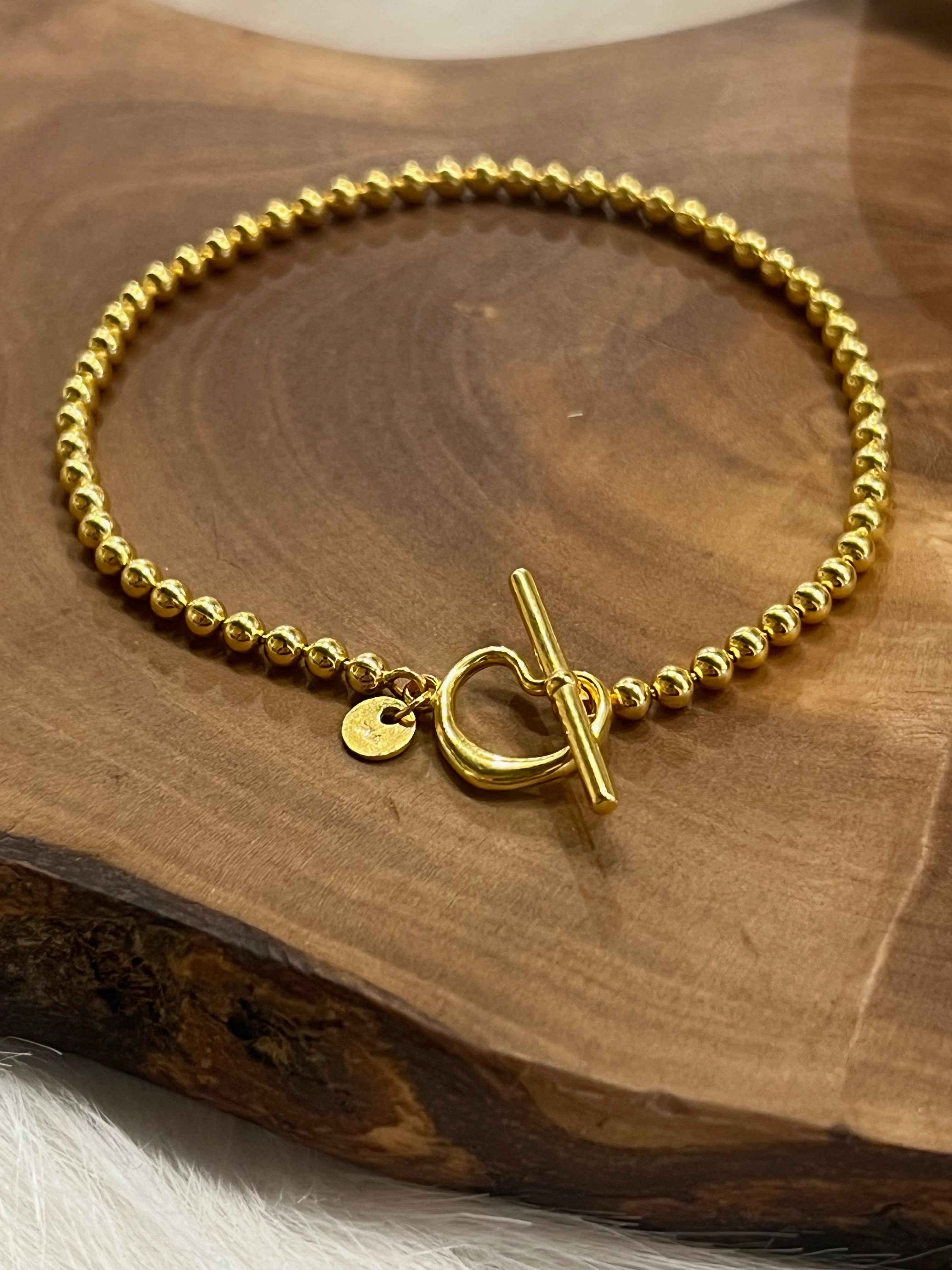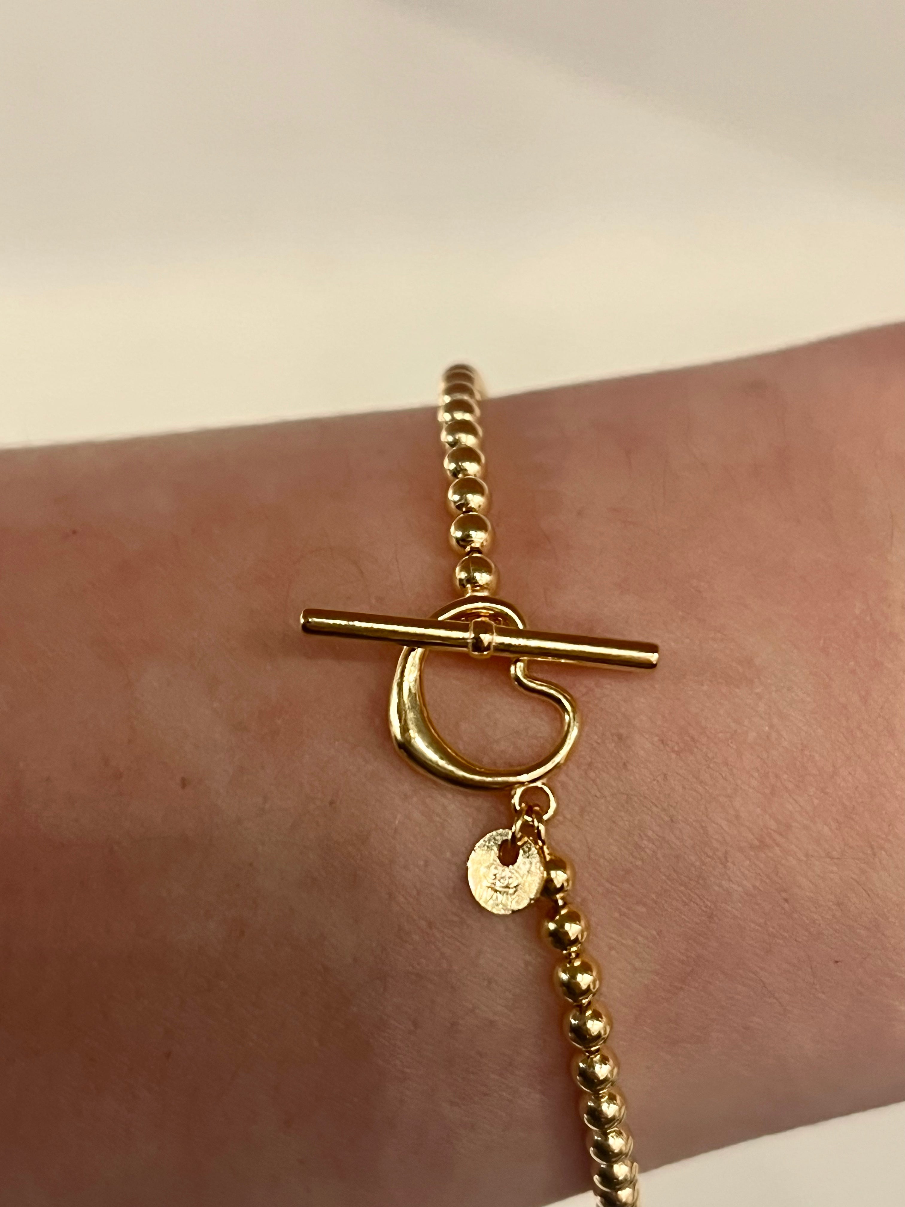 Gold Ball Bead bracelet with a Tiffany style heart clasp