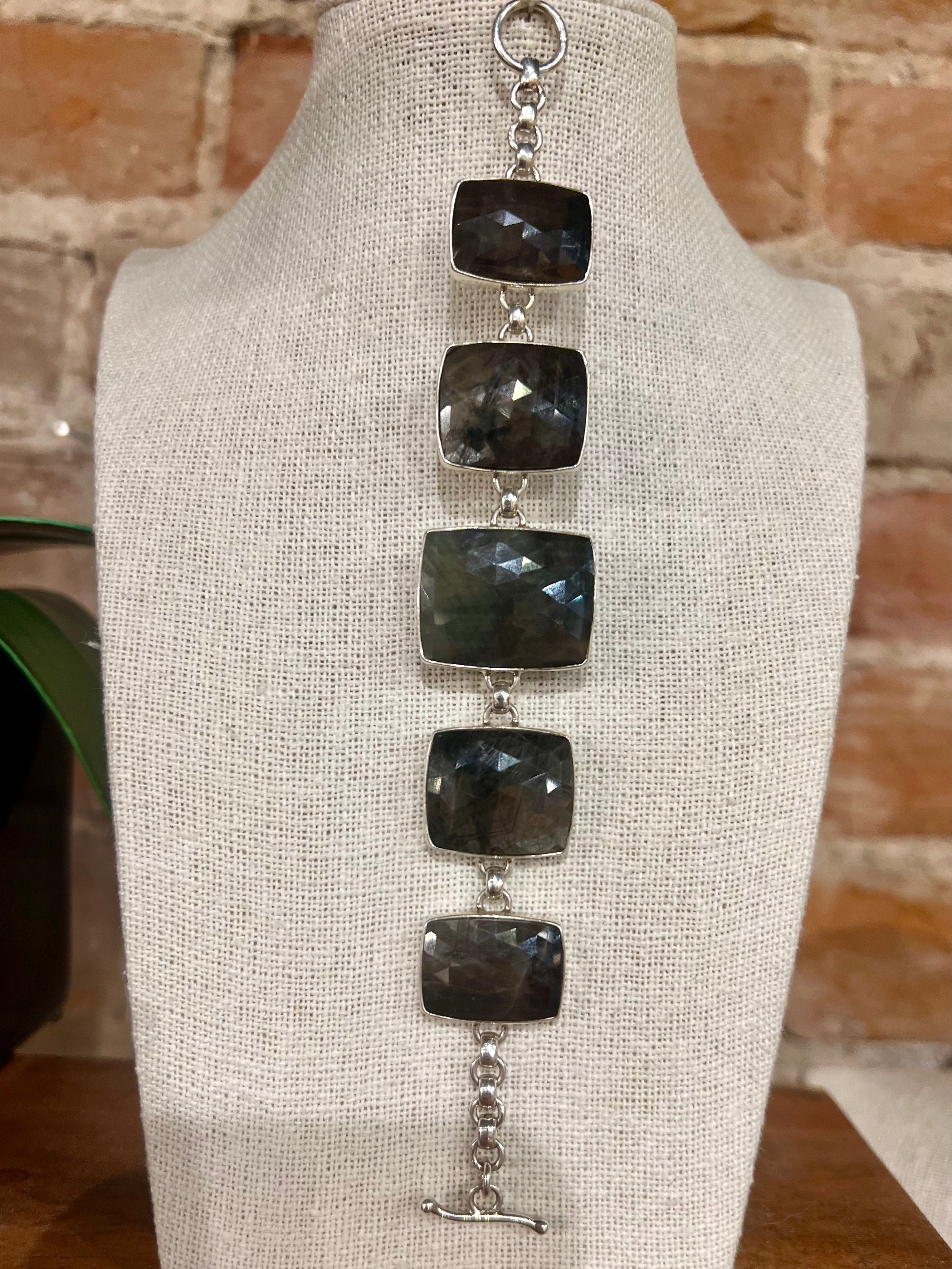 Sterling silver sapphire bracelet with a toggle clasp, 7"