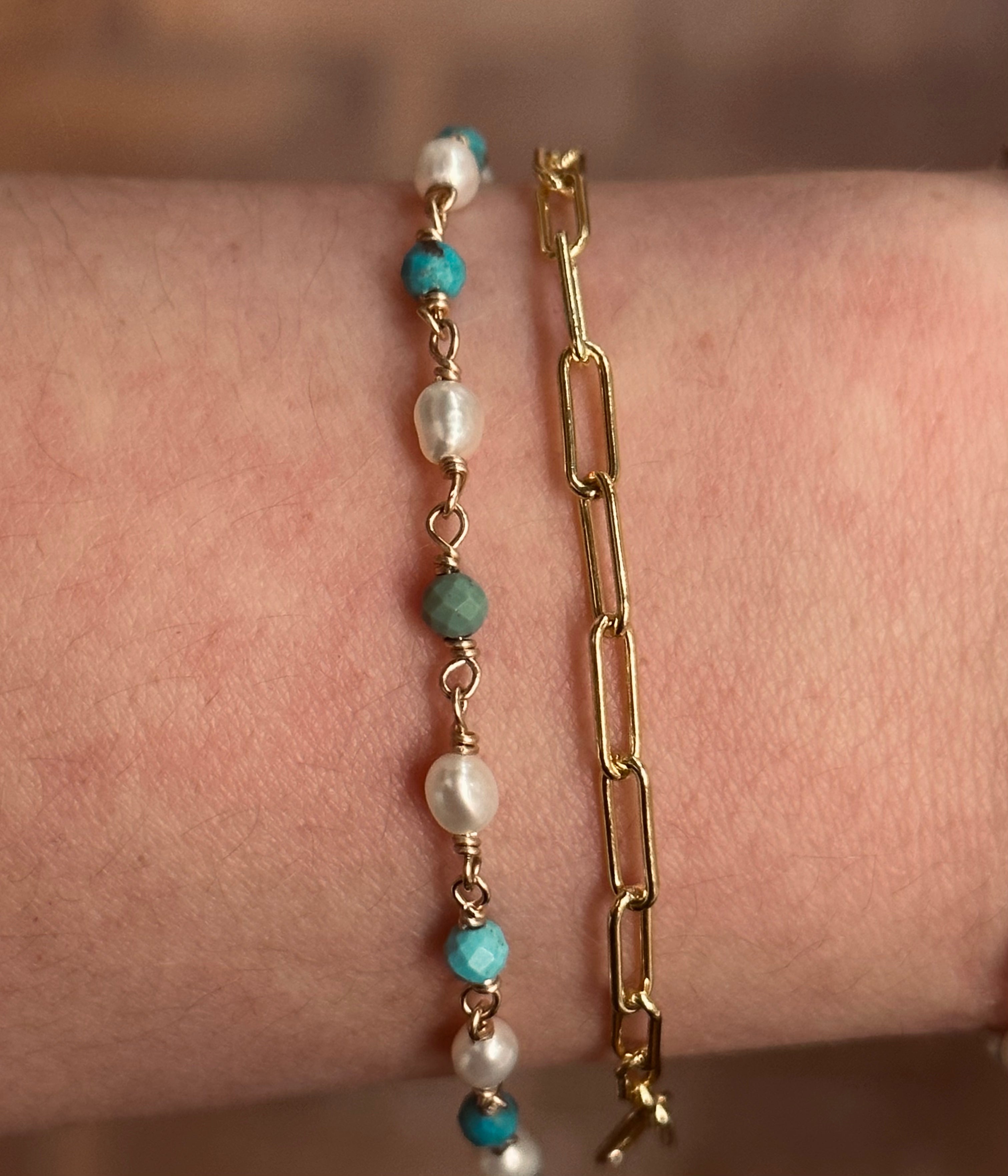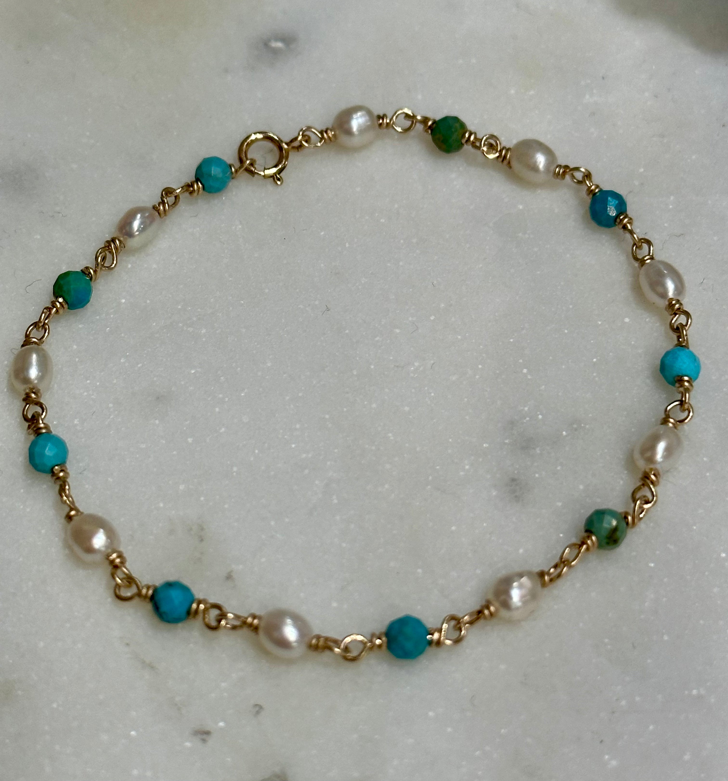 Turquoise & Pearl Gemstone Bracelet