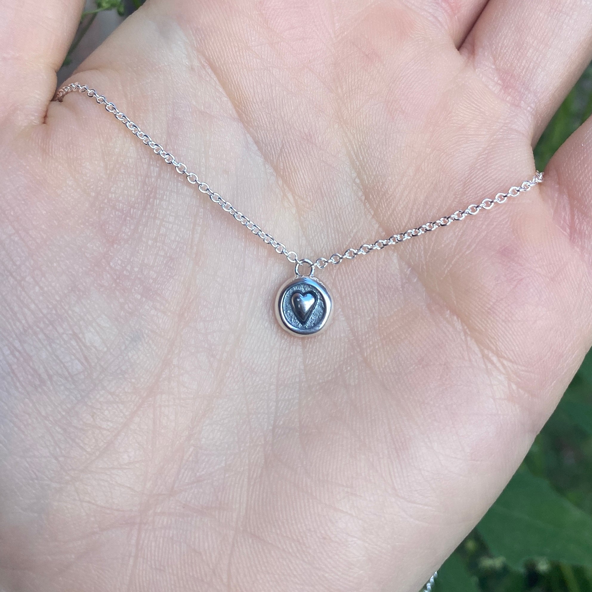 Brushed Sterling Disc Heart Necklace | 16-18"