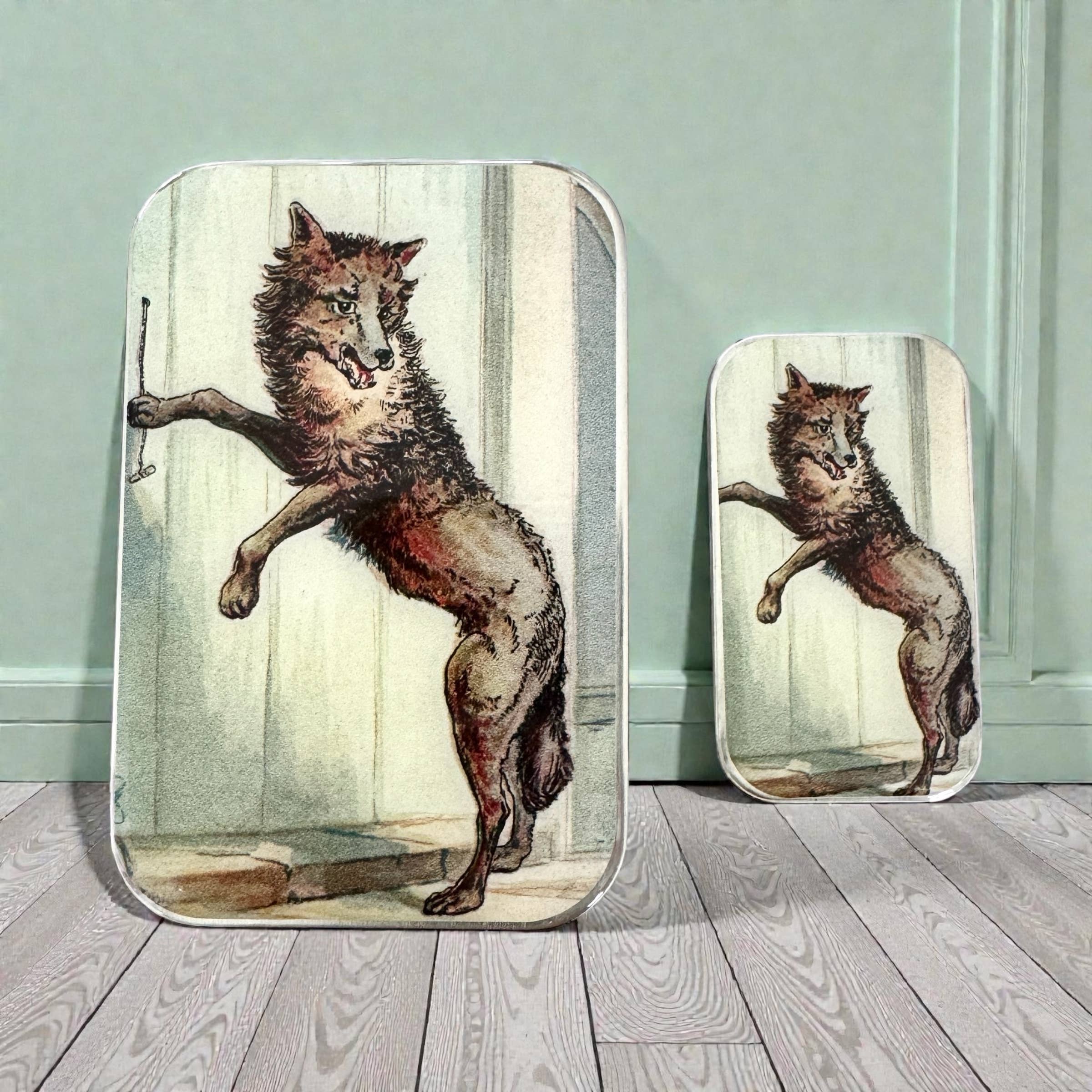 In this vintage illustration, a lone wolf stands at the threshold — patient, composed, and impossible to ignore. Has he lost his way in the forest? Or has he come exactly where he meant to be?