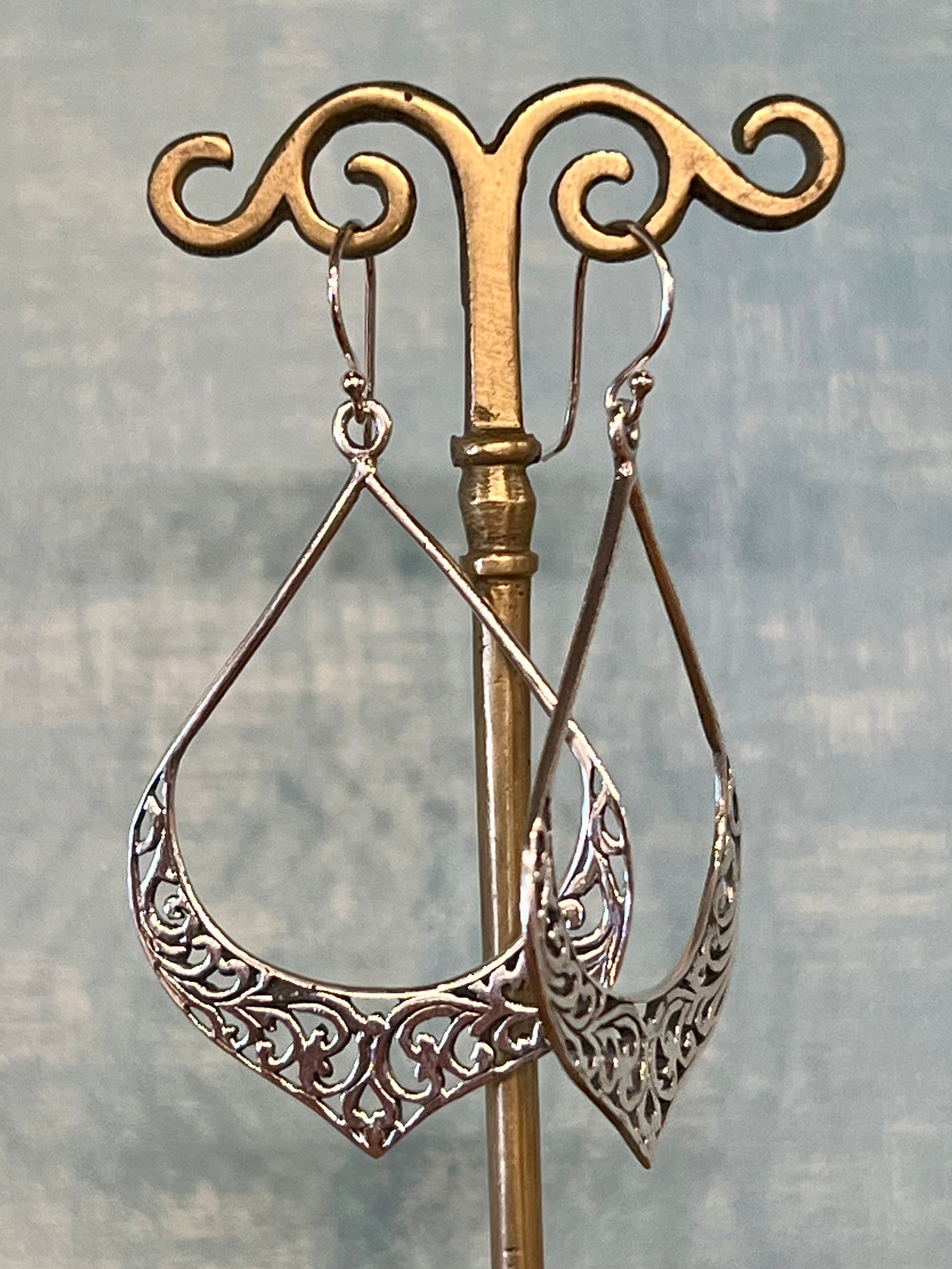 Sterling silver filigree dangle earrings.