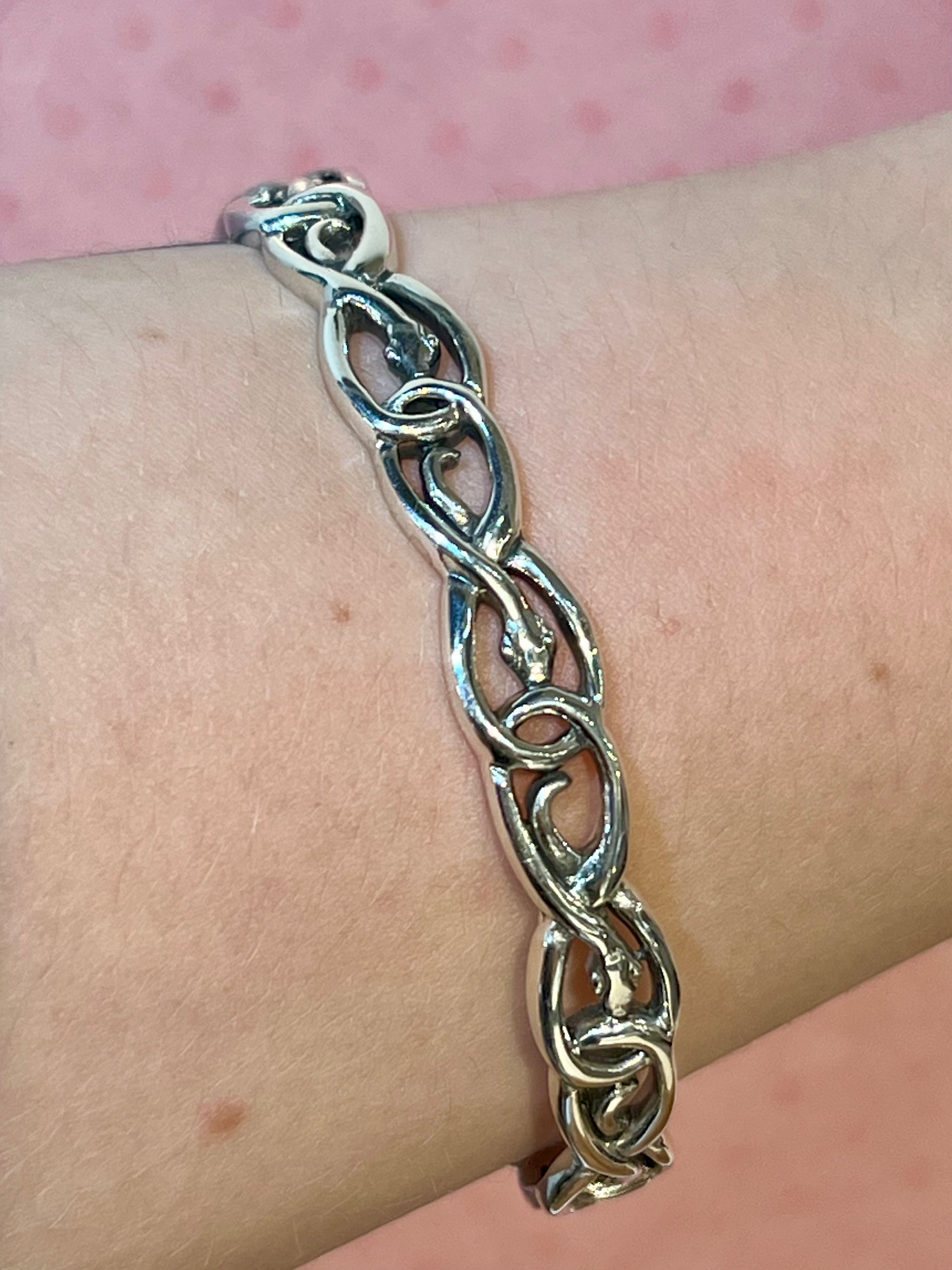 925 sterling silver bangle featuring tangled snakes, creating a filigree design.