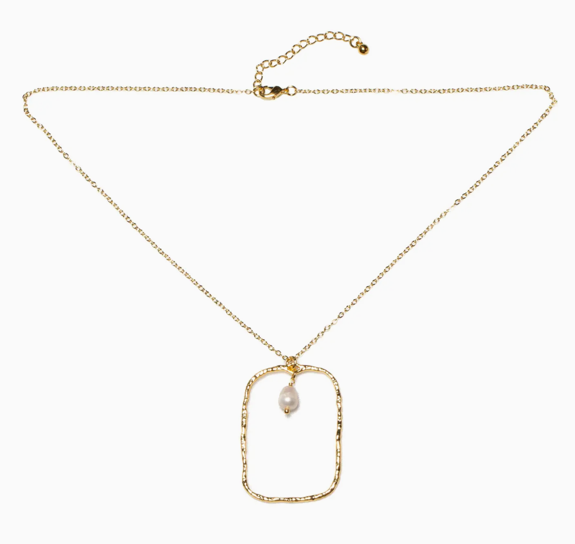 Hammered Rectangle with Pearl Pendant | Gold Plated