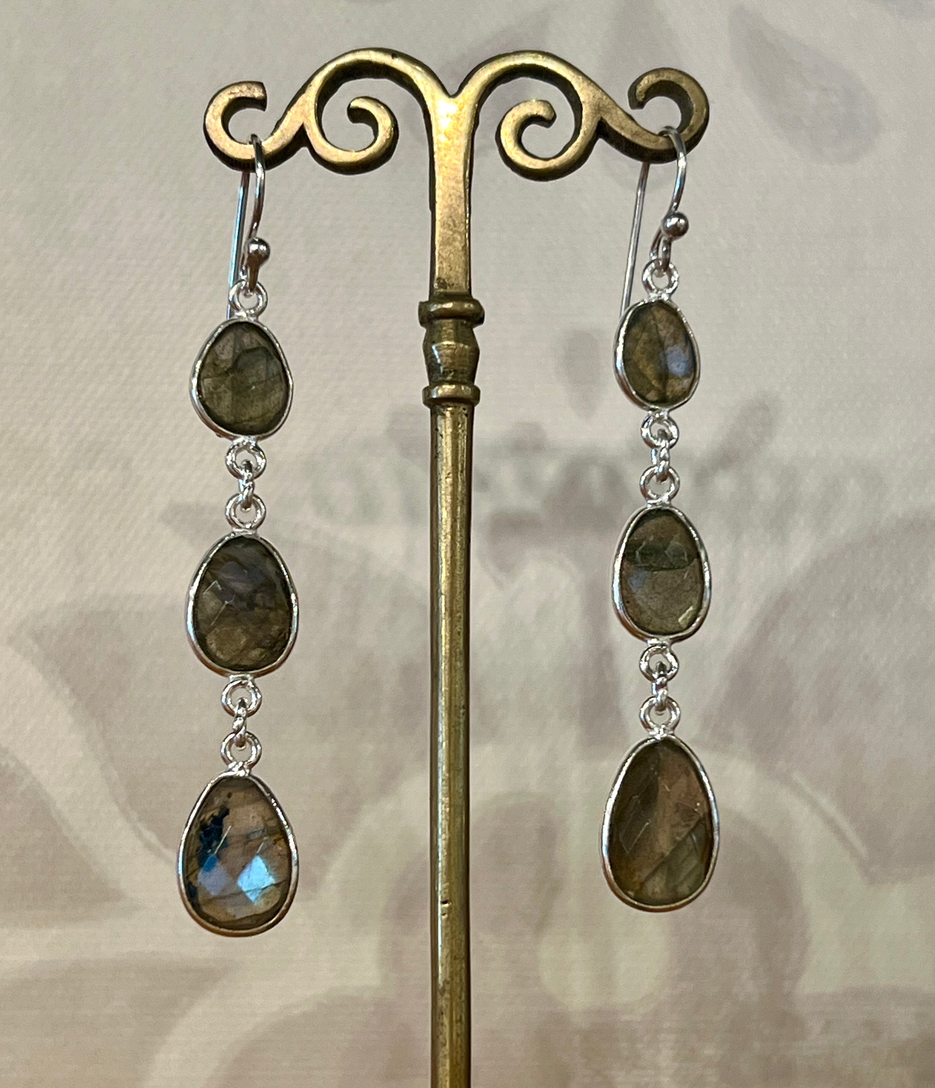 Three faceted labradorite drop earrings