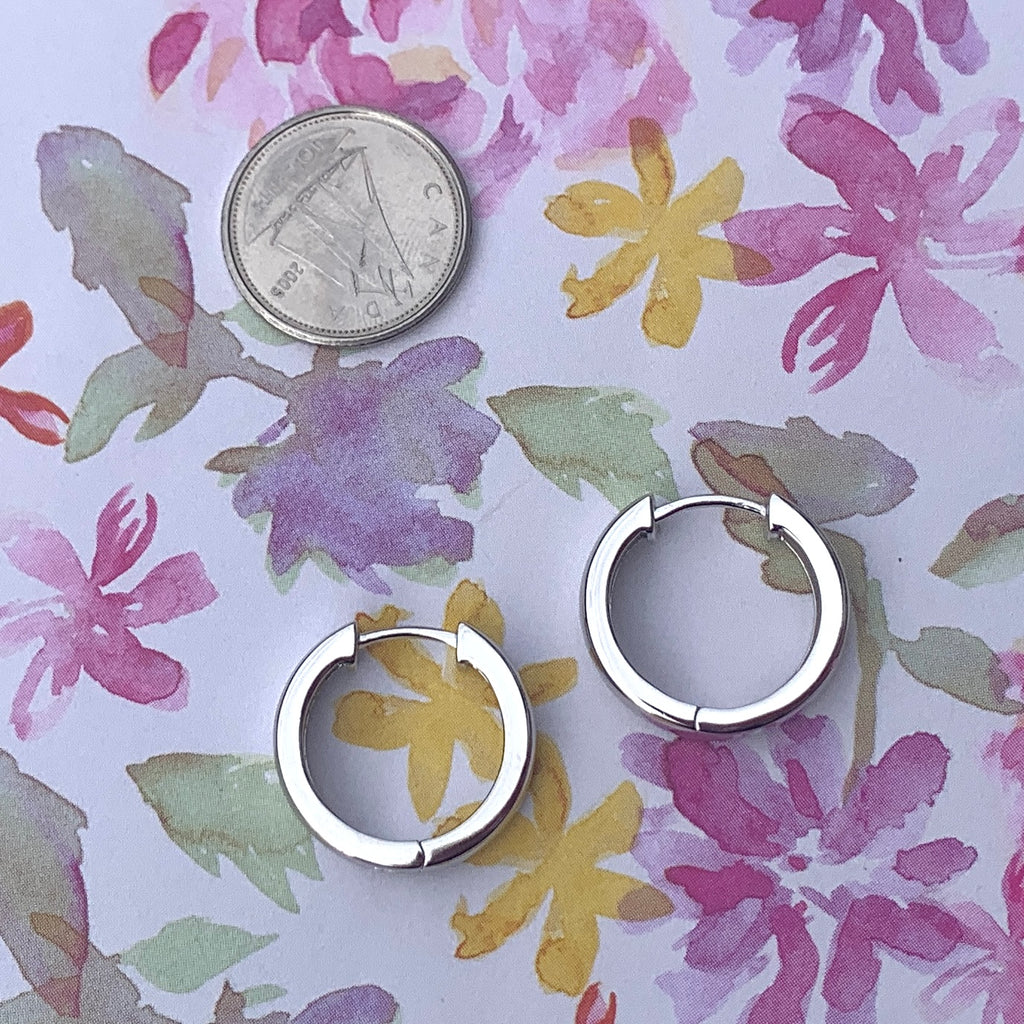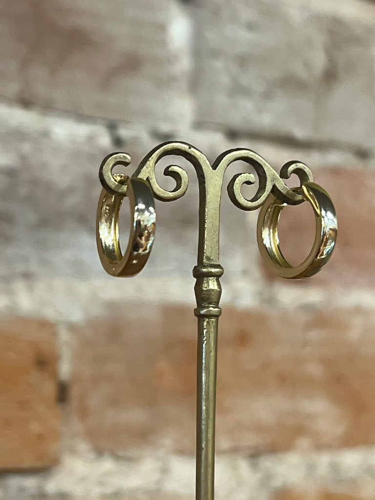 Sterling silver 14k gold plated hoop earrings. 18mm in diameter, 4mm in width.
