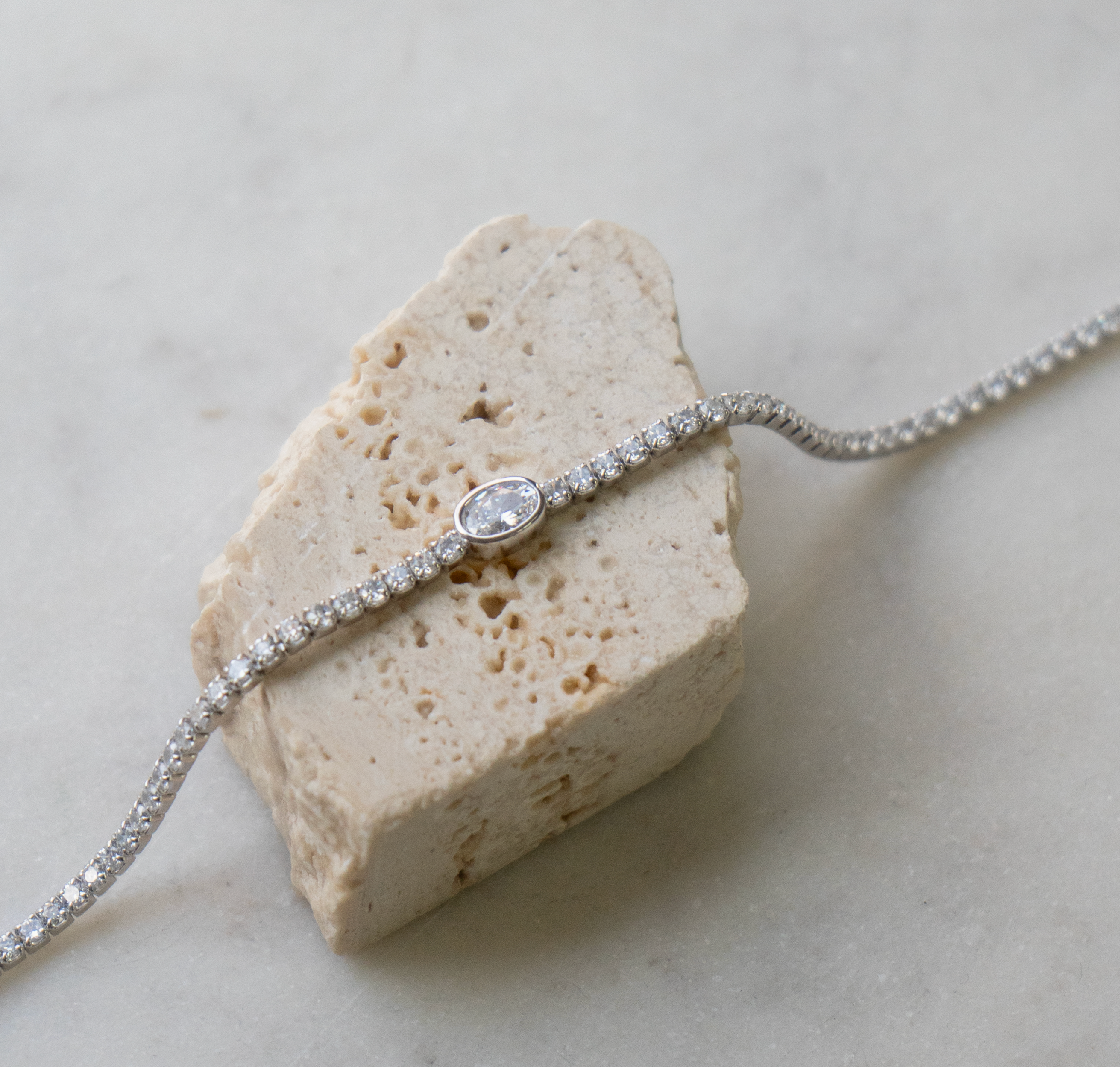 Tennis Bracelet with Centre Stone | Oval | Cubic Zirconia