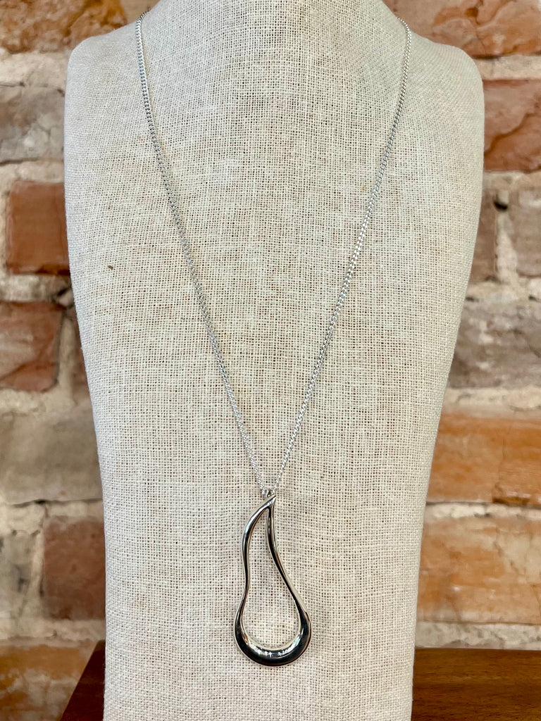 Sterling silver warped teardrop 2", on a 20" curb chain