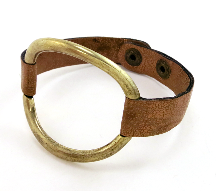 Brass Circle & Leather Bracelet
