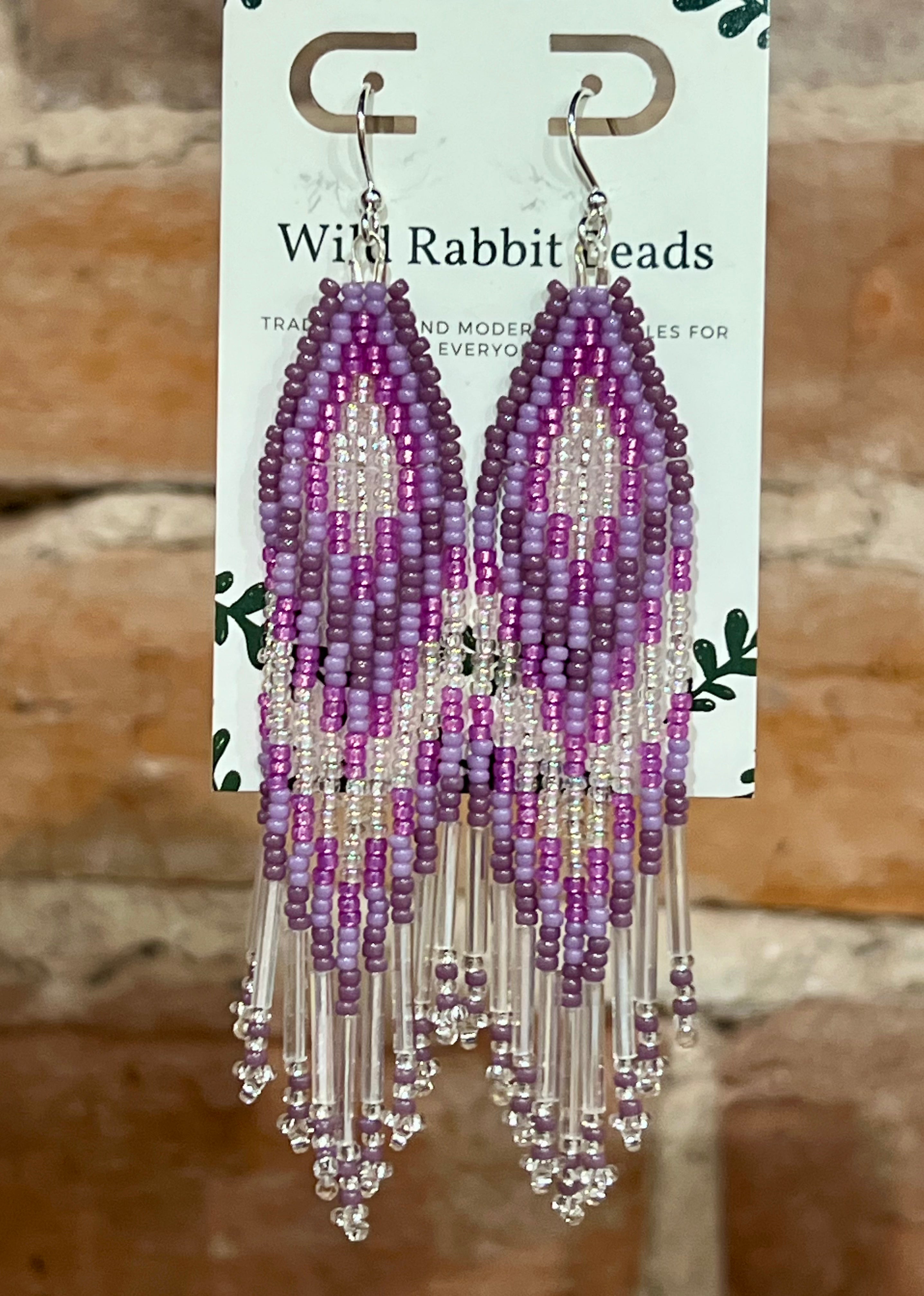 Handmade beaded earrings on sterling silver hooks, made by local Indigenous artist - Wild Rabbit Beads. "Traditional and modern wearables for everyone."