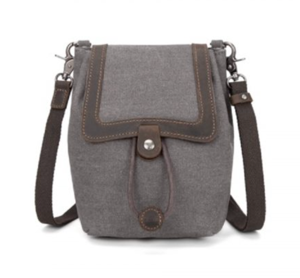Small crossbody multi-function canvas bag, in charcoal.
