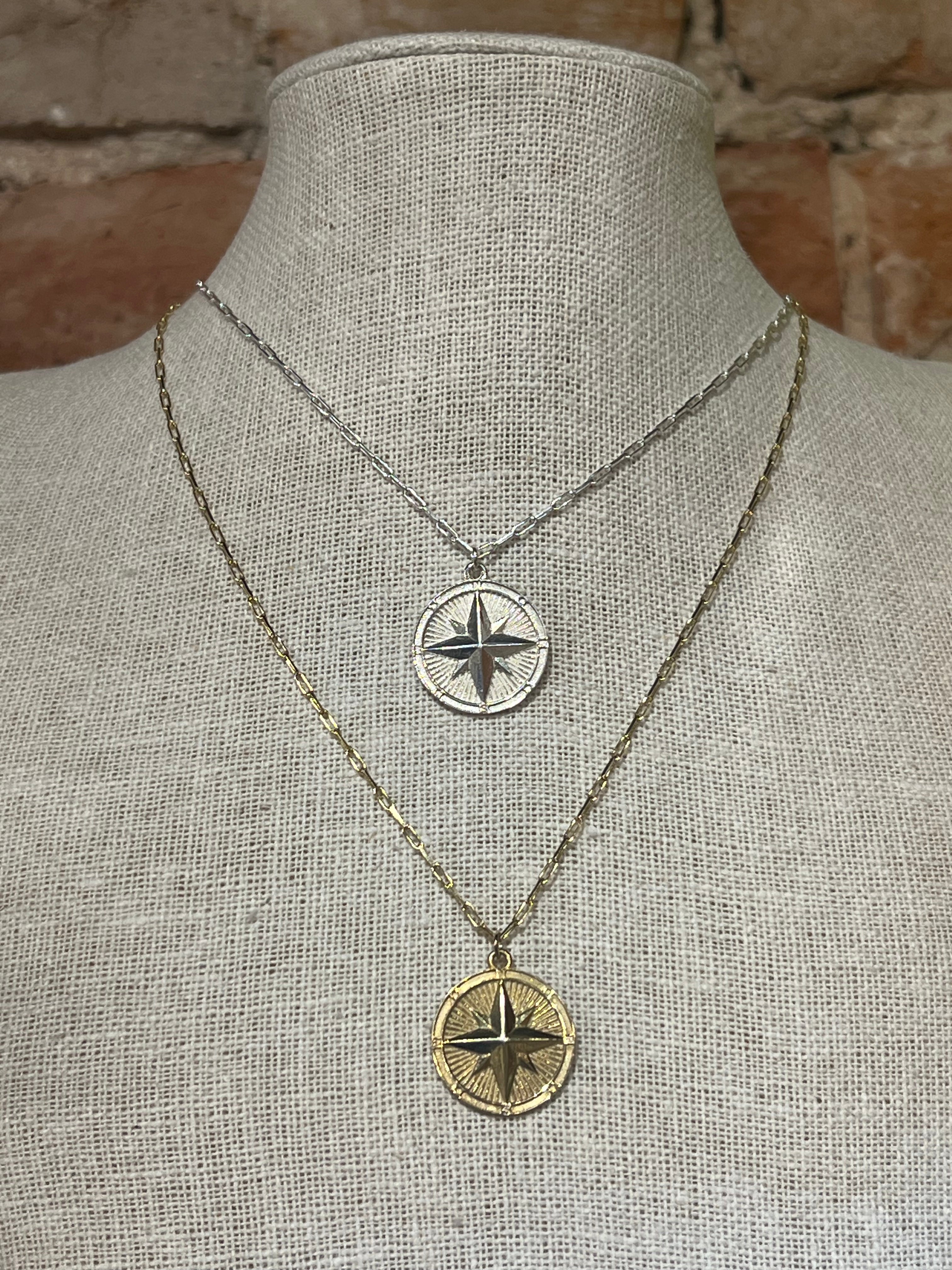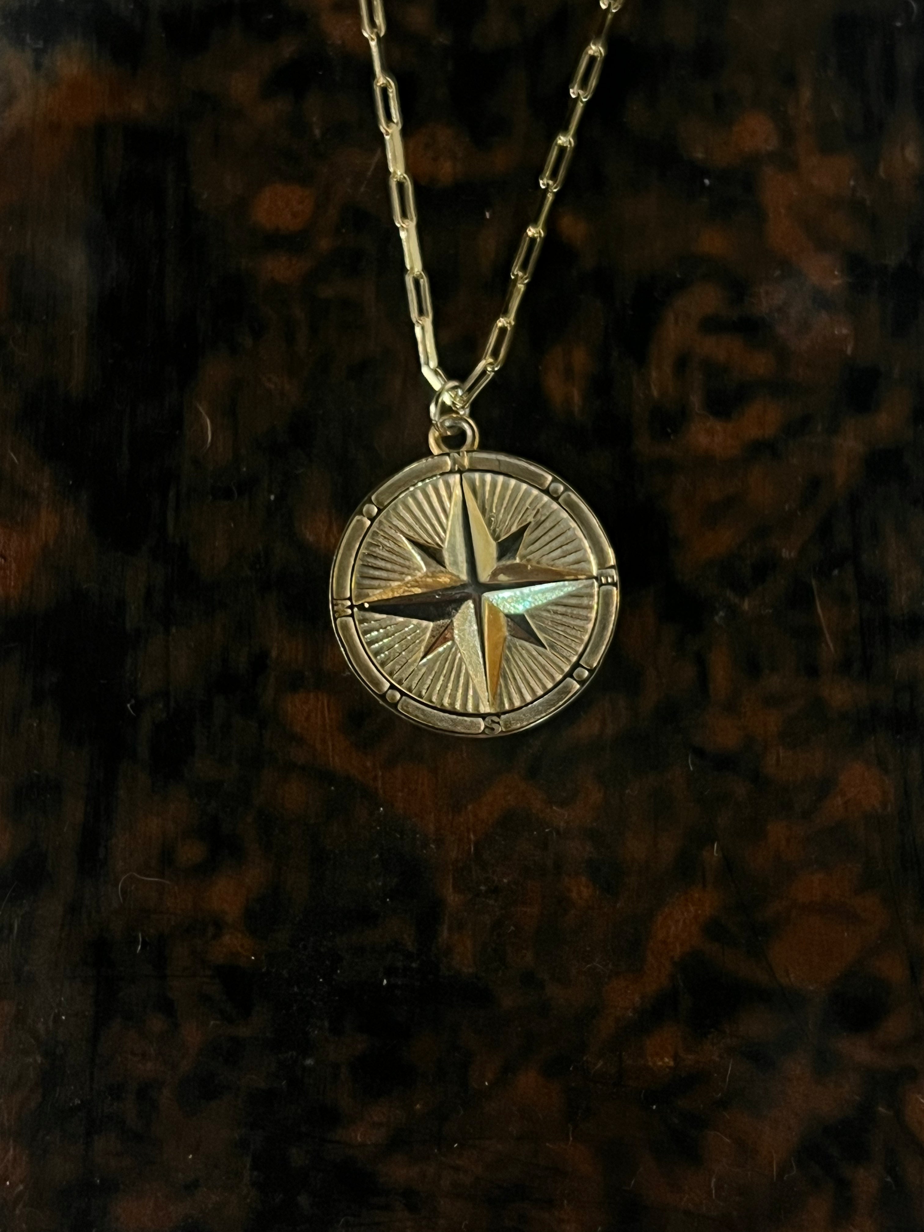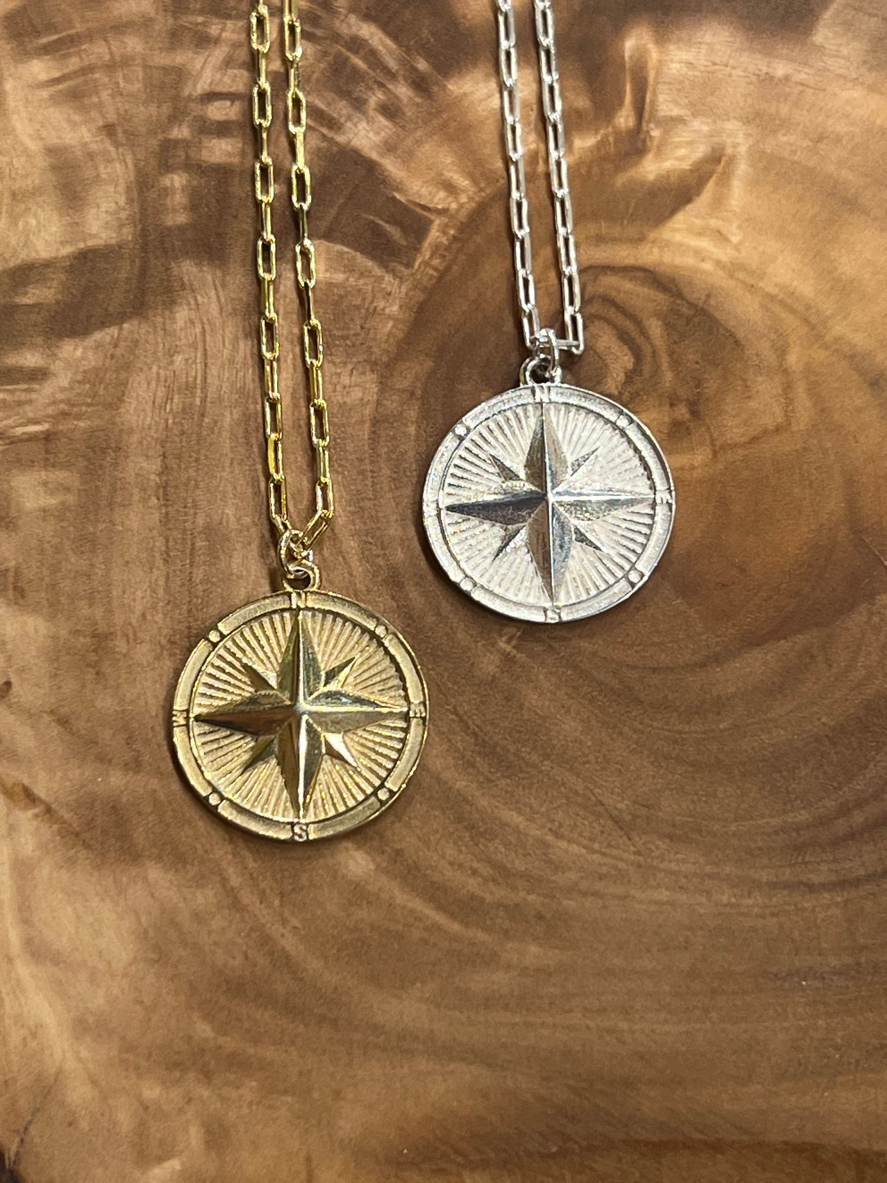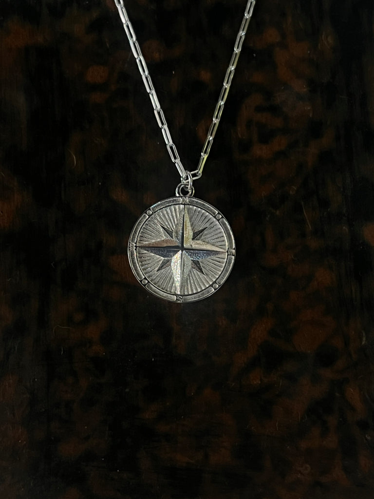 Compass Necklace | Paperclip Chain |Sterling Silver or Gold Vermeil