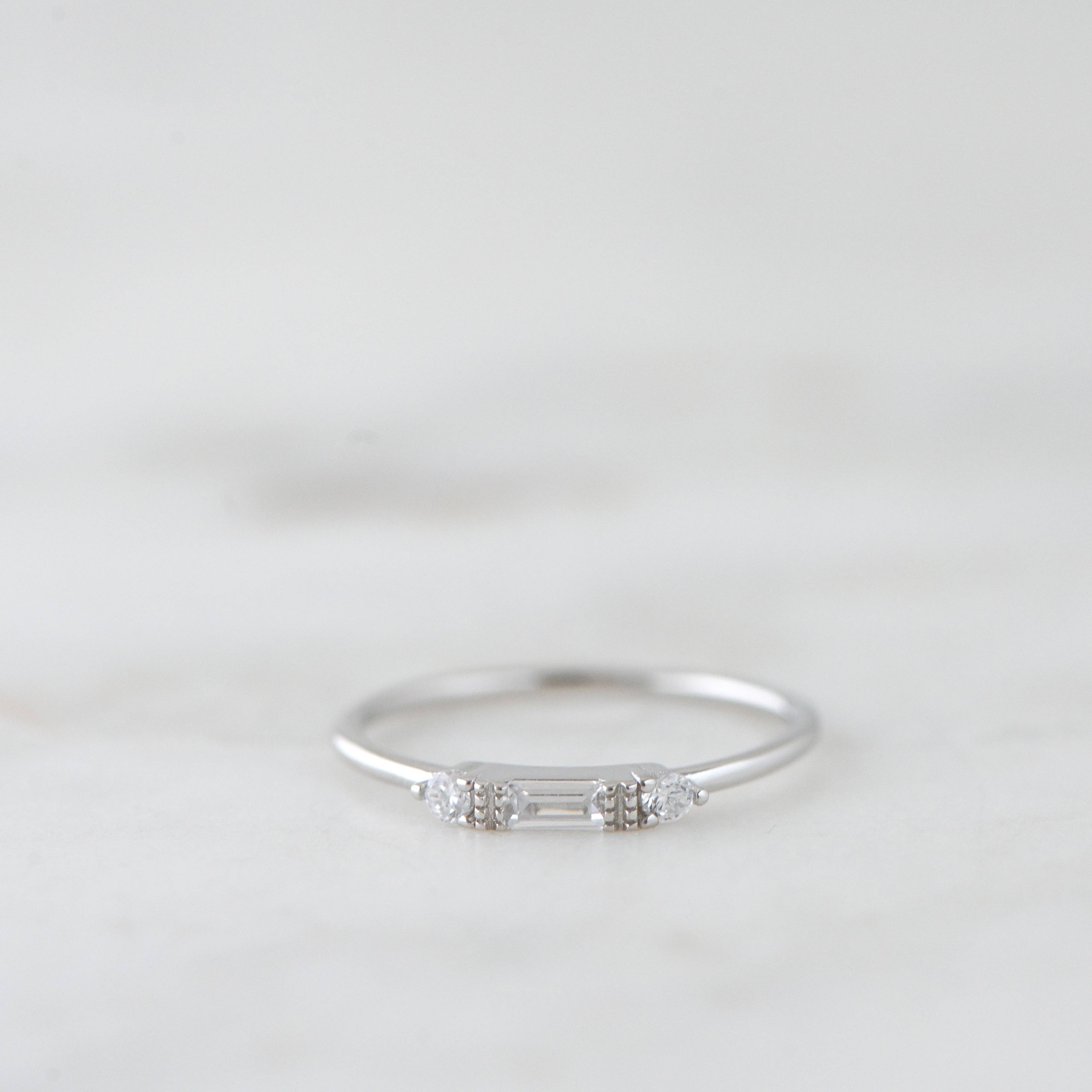 Dainty Baguette Ring: Silver / White CZ