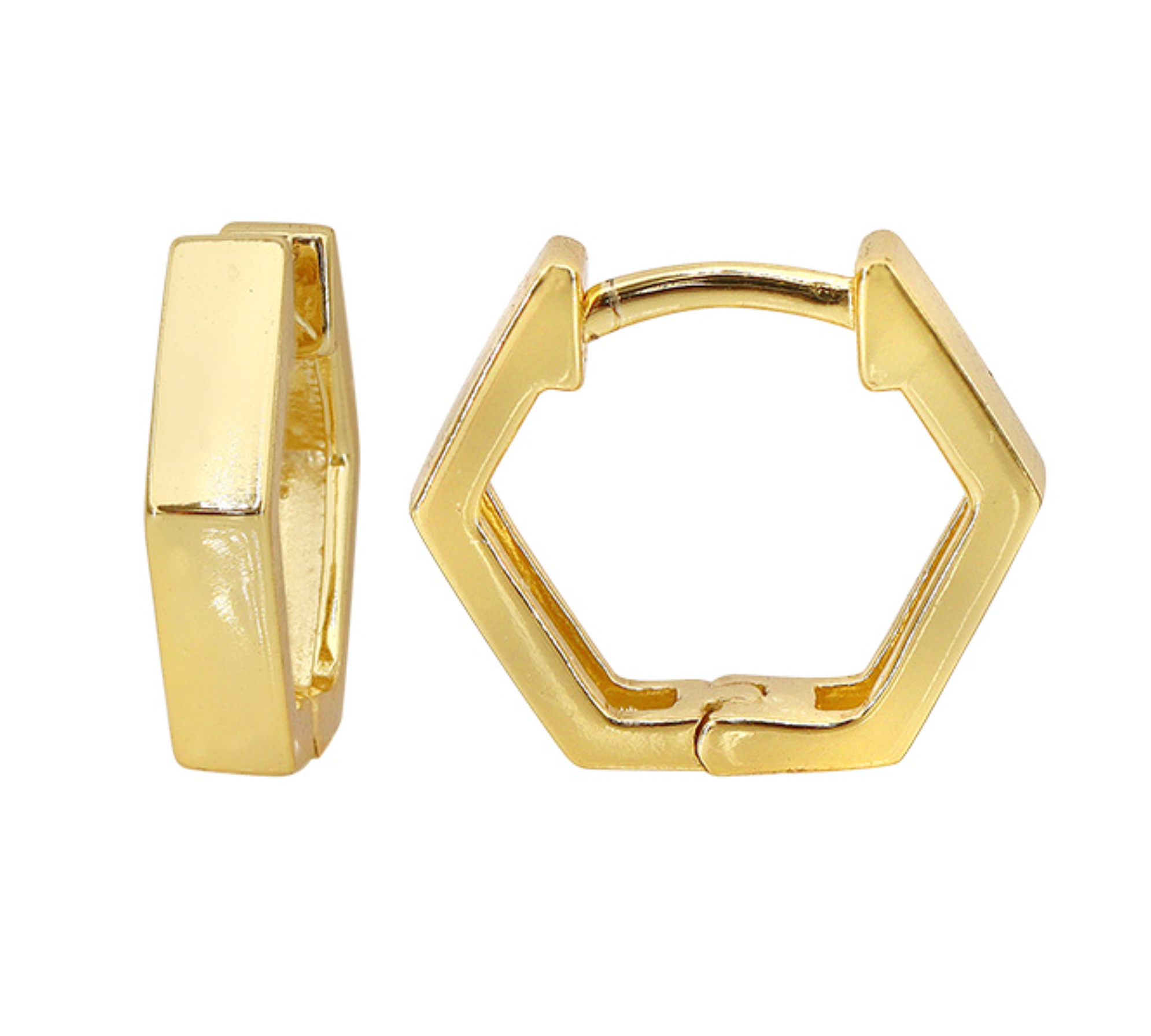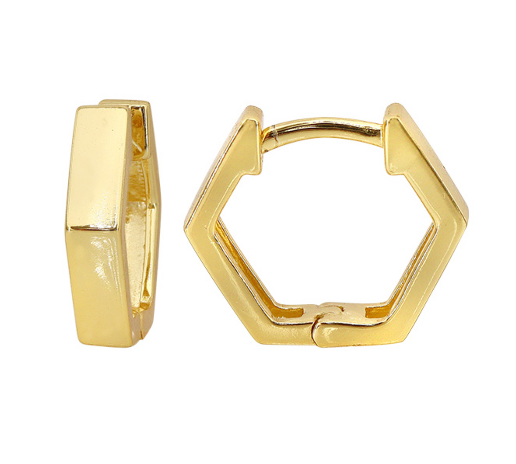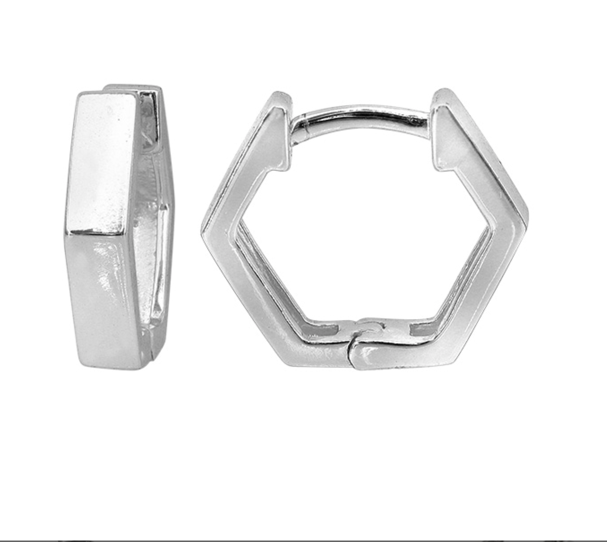 Hexagon Hoops | Huggies | Sterling Silver with Rhodium or Gold Vermeil