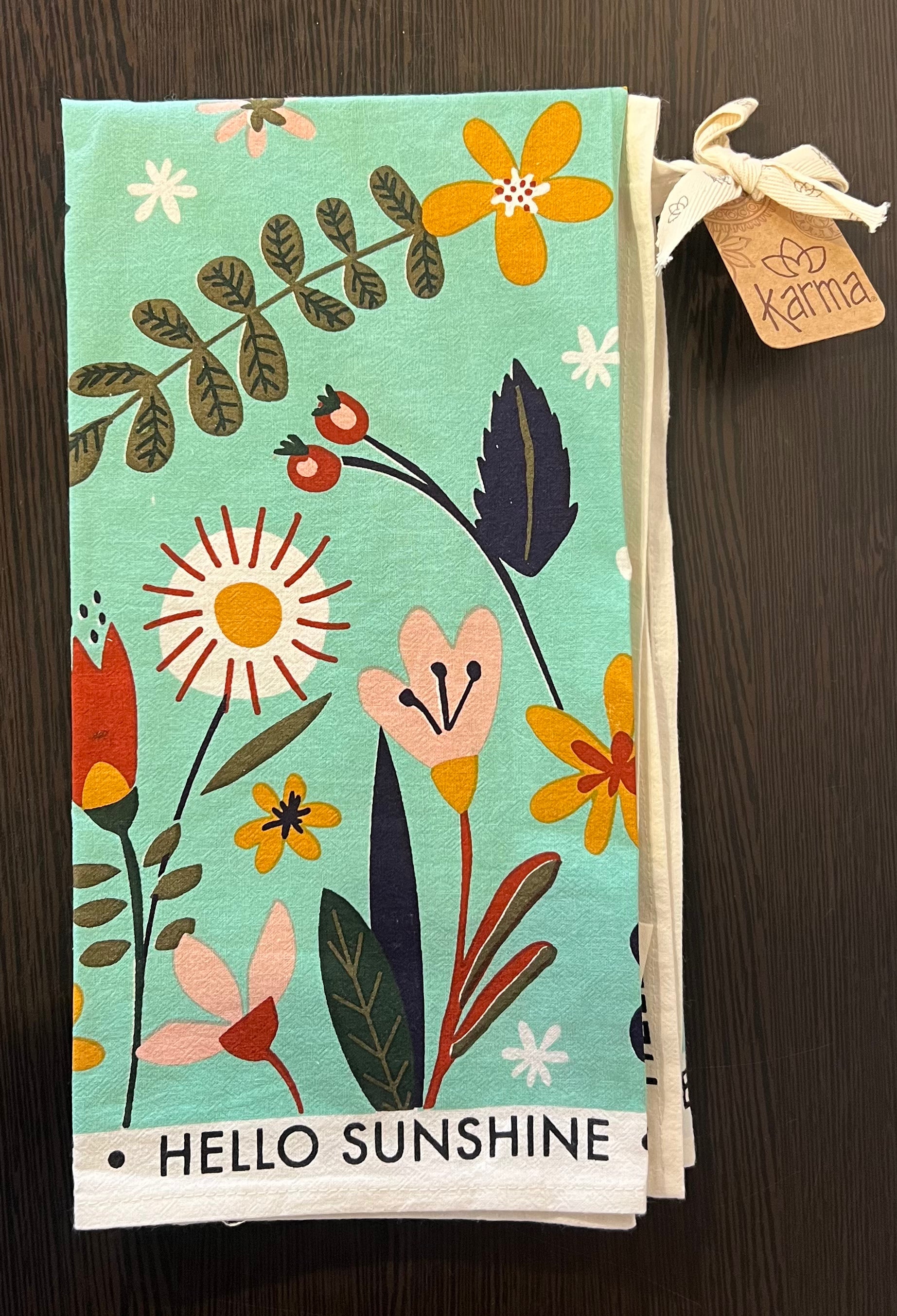 "These sweet Shelly Tea Towels are beautifully designed and feature mood-boosting sayings that help adorn your kitchen with positivity. These tea towels make a delightful addition to your kitchen and are sure to bring a warm, colorful feel to the home."