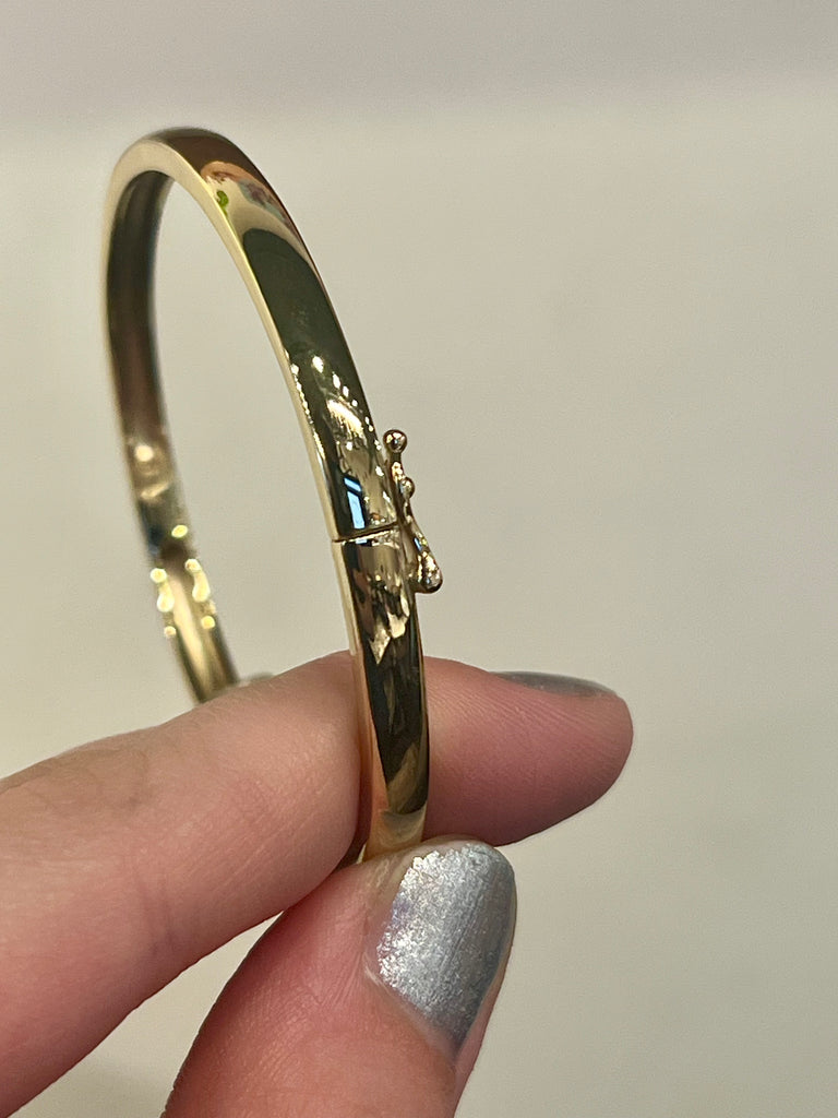 This stunning solid bangle bracelet is super trendy and stylish! It's comfortable and lightweight. Looks great stacked or on its own! * THICK plating of 14k Gold 925 Sterling Silver * Super high-quality & lightweight